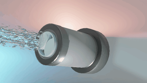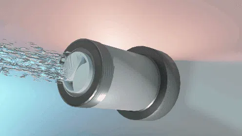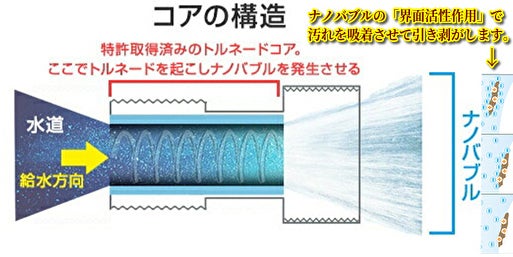 トイレ配管の水道水が (ナノバブル発生コア)を通過する際に水の中に含まれる空気をスーパーナノバブル化します。