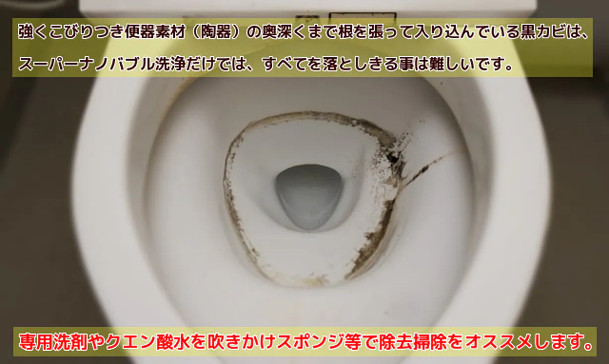「スーパーナノバブル」を含む洗浄水によりトイレのさぼったリングが出来るのを防止します。
