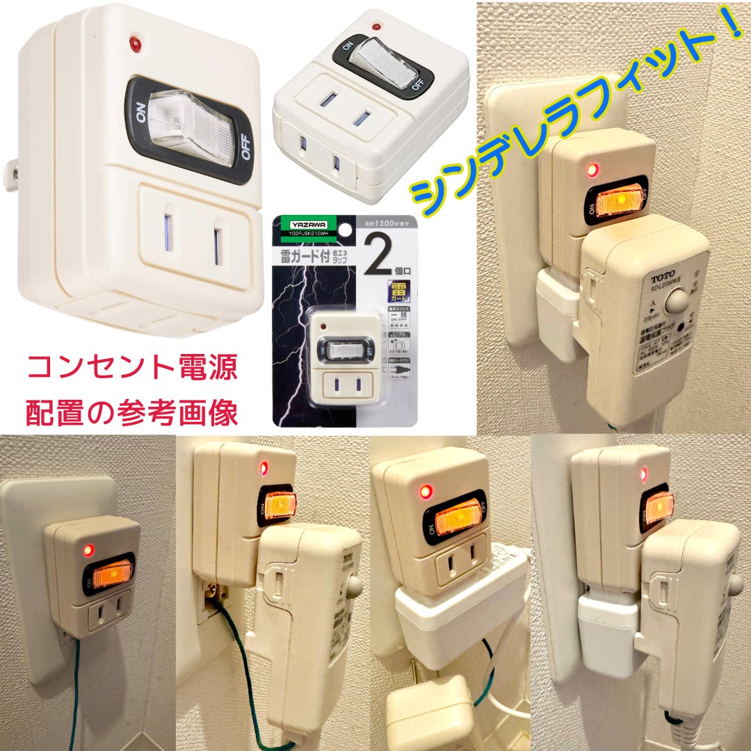 トイレの2個口の電源タップは、耐久性があり落雷時に機器が壊れない『雷サージ付き』タップがお勧めです。