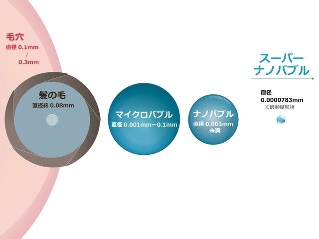 注意 ※「スーパーナノバブル」は、「ナノバブル」分類に含まれ、正式な規格名称ではありません。例えるなら「ティーカッププードル」が特別小さな犬の俗称であり正式には「トイプードル」に分類されるのと同じです。