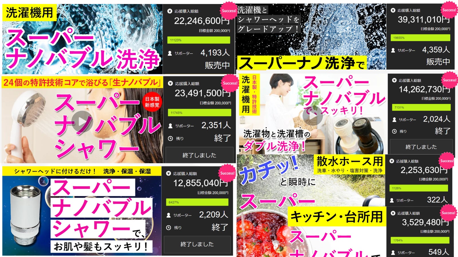 ナノバブルメーカー高納商店の「スーパーナノバブル商品」過去成功プロジェクト ほんの一例です。