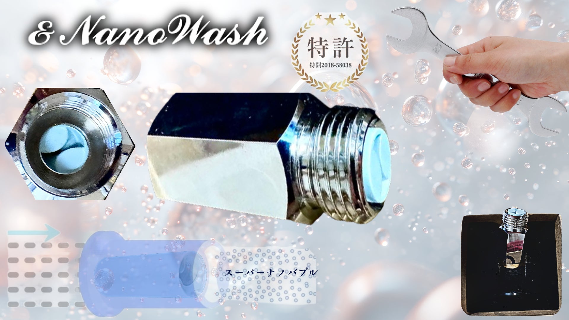 今回のプロジェクトでは、スーパーナノバブル製品ご愛用者の皆様から、洗剤や石鹸が使えない、おしりや、デリケートゾーンを洗浄する「温水洗浄便座」こそナノバブルで洗浄したいとのご要望が多かった事から、専門分野である洗浄便座メーカー株式会社杉半の協力を得て、洗浄便座専用のスーパーナノバブル発生装置(&Nanowash)の商品開発に成功しました。