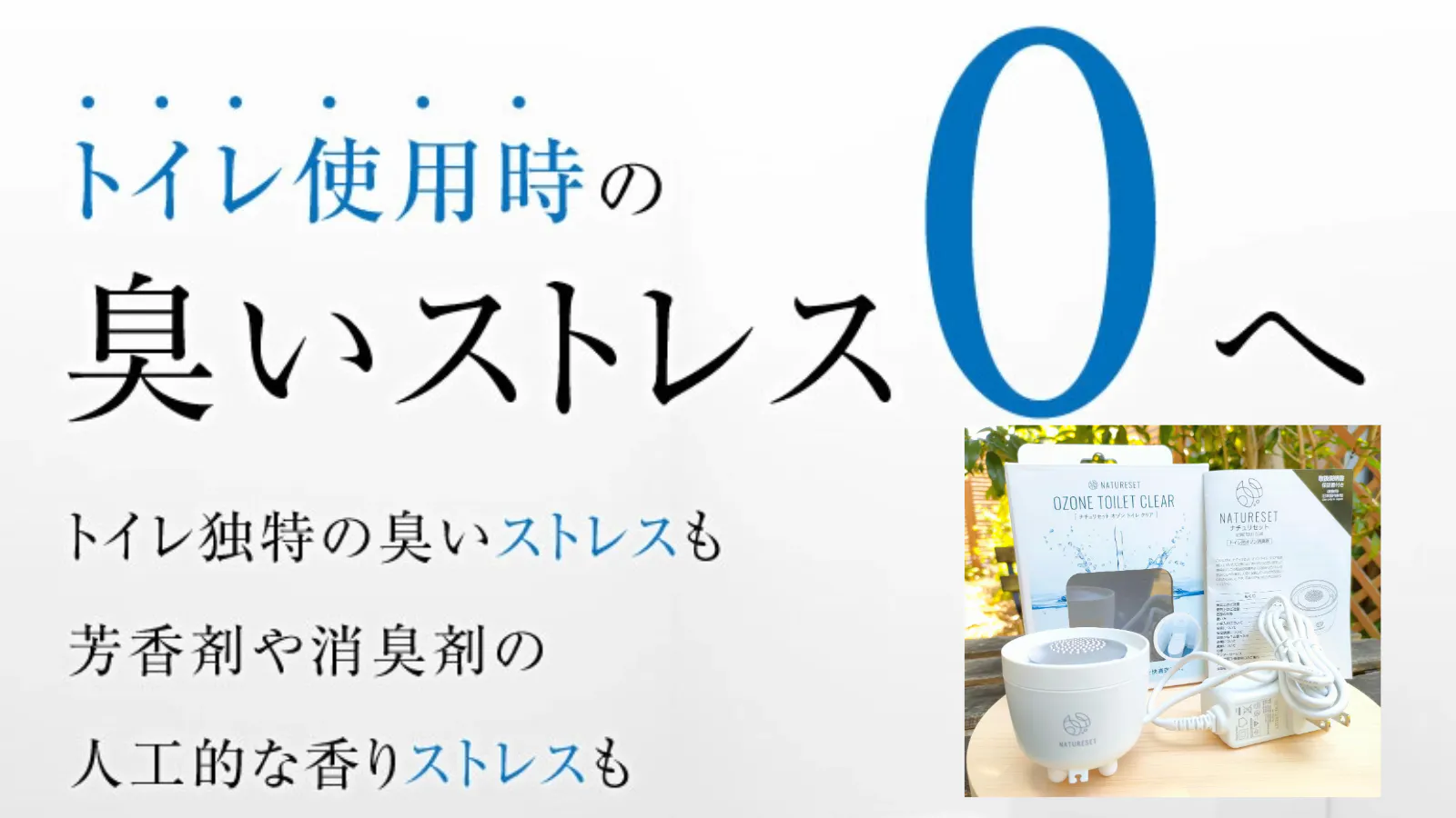 自然界にも含まれている「ただのオゾン」ではなく効果を感じられる「効くオゾン」でトイレに快適な「ストレス0」のニオイレス空間を叶えます。