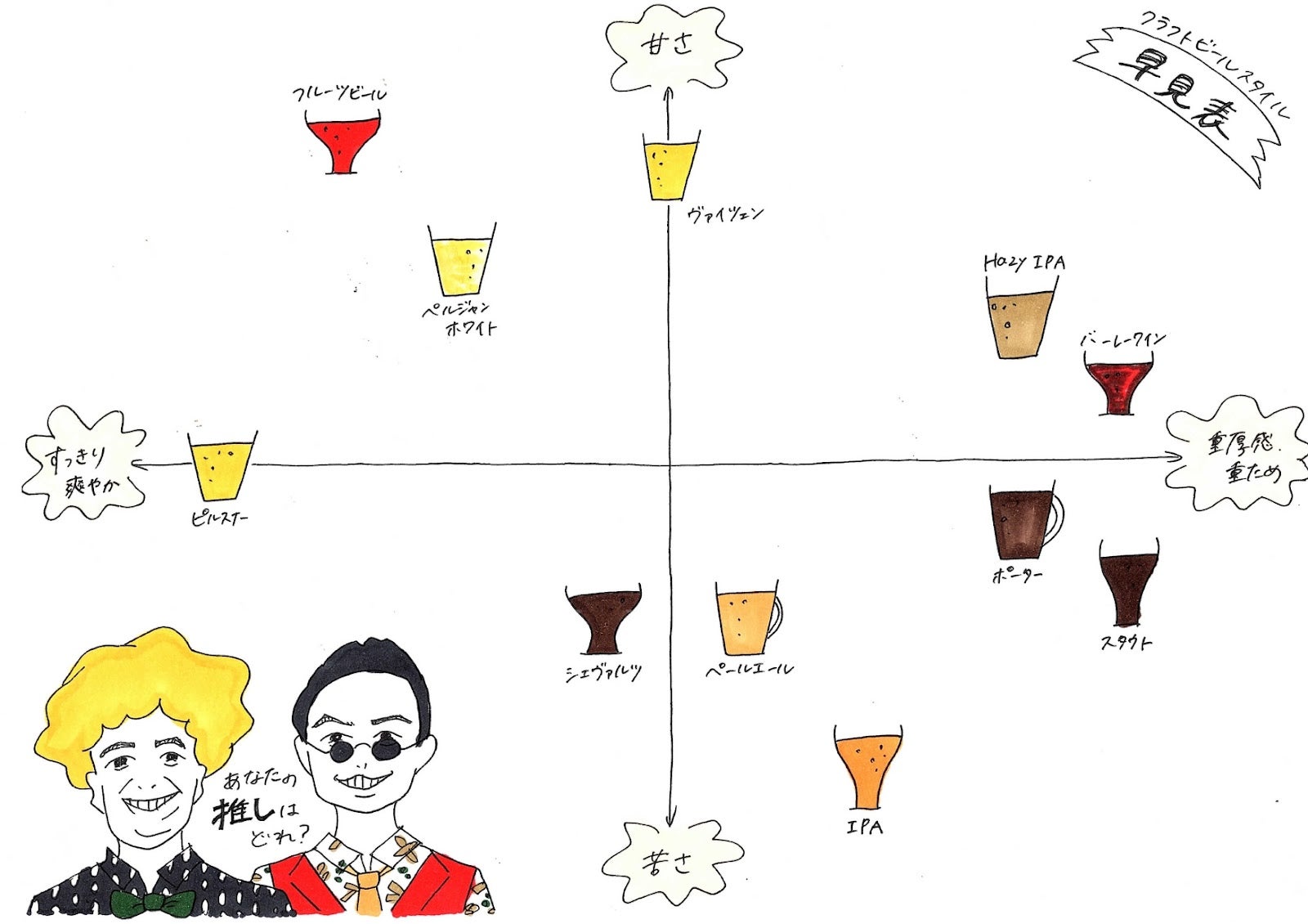 推しビール活への一歩目として、ビールの初歩の初歩の初歩がわかるイラストも用意してみました。