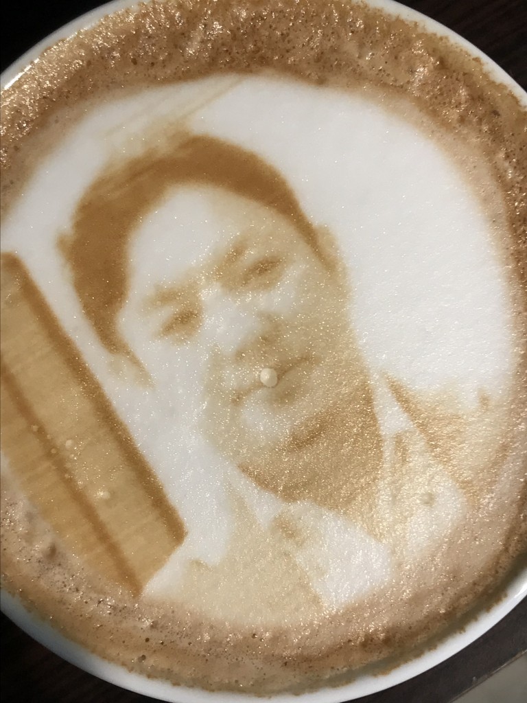 カプチーノの泡にこのように文字や写真を転写する事ができます。