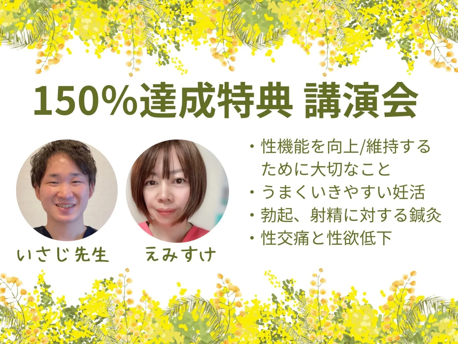 不妊治療や男性性機能を専門とする鍼灸師、伊佐治先生をお招きして、一般の方々にもわかりやすく、2人で性機能についてのお話をします。