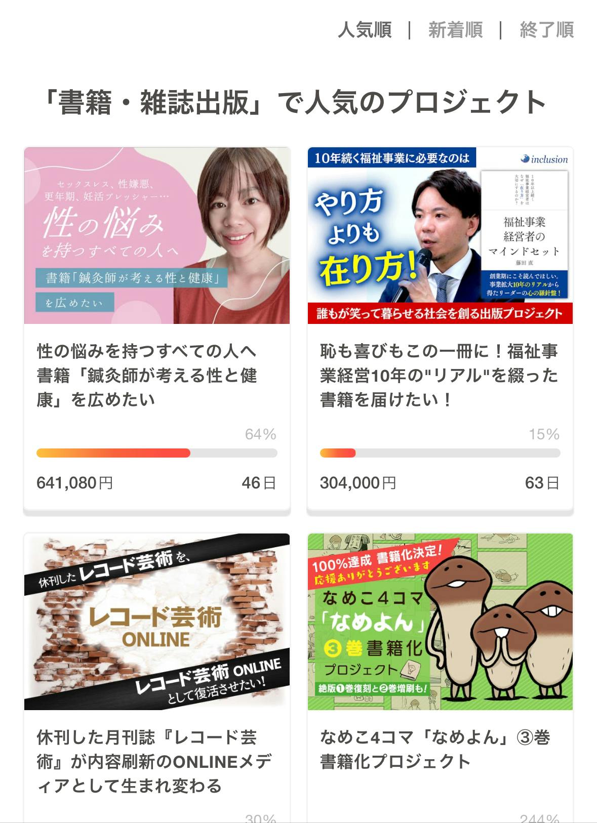 「書籍・雑誌出版」部門の人気順、で並べ替えたときに、1位にきてて