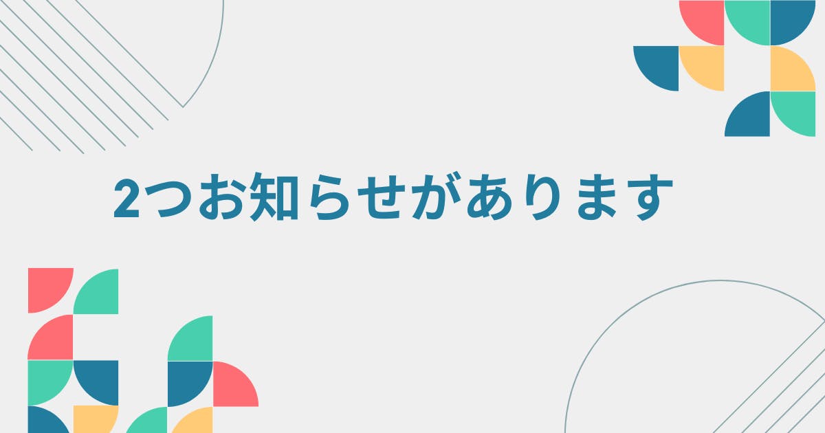 そこで今日は、皆様に2つのお知らせをさせてください。