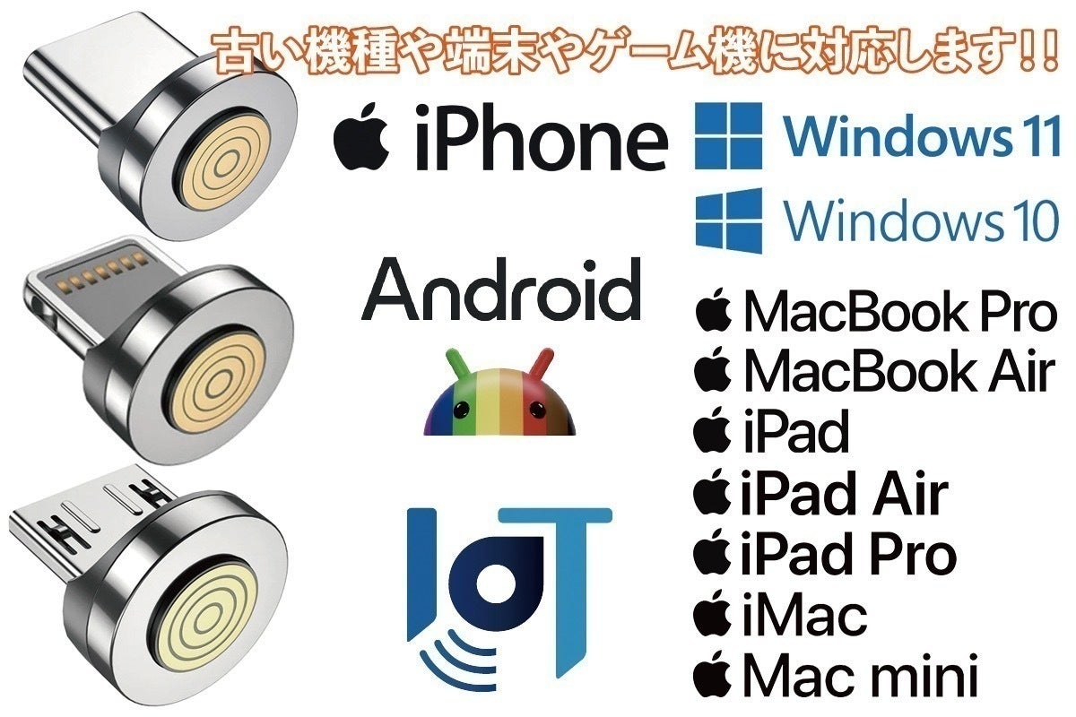 (2)対応:Apple製品,Andoroid製品,USB-C,Lightning,Micro USB 製品に対応