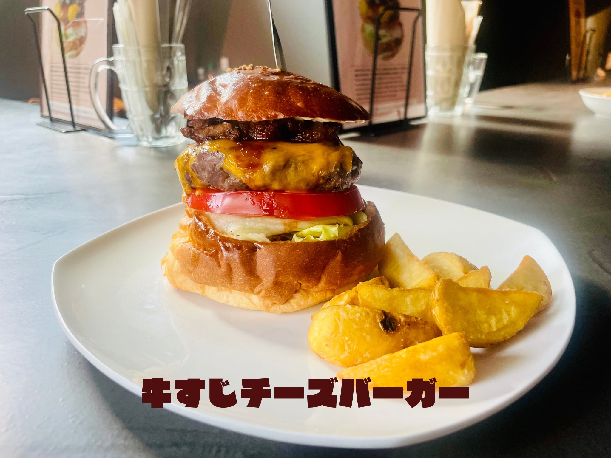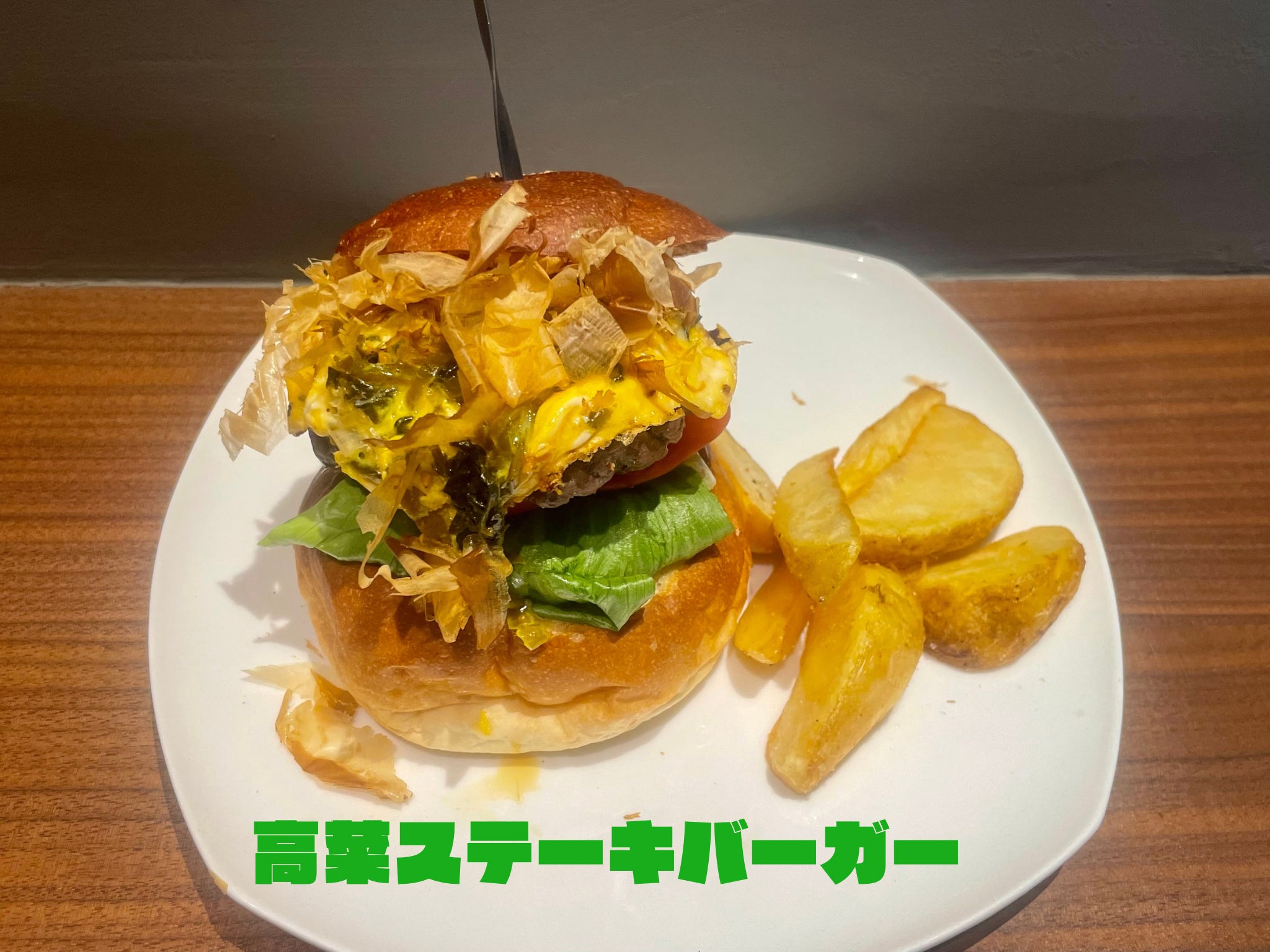 メニューは、定番はもちろん、当店オリジナルの看板メニュー「牛すじチーズバーガー」、出身の岐阜県の郷土料理「漬物ステーキ」をバーガーにアレンジした「高菜ステーキバーガー」や、その時の旬の食材を他の店にはない斬新な組み合わせをした限定バーガーも提供しています。変わり種の商品もただ突飛な発想ではなく試作を繰り返し自信を持って提供しているので、「意外だけどこの組み合わせ合う!」と納得していただけると思っています。