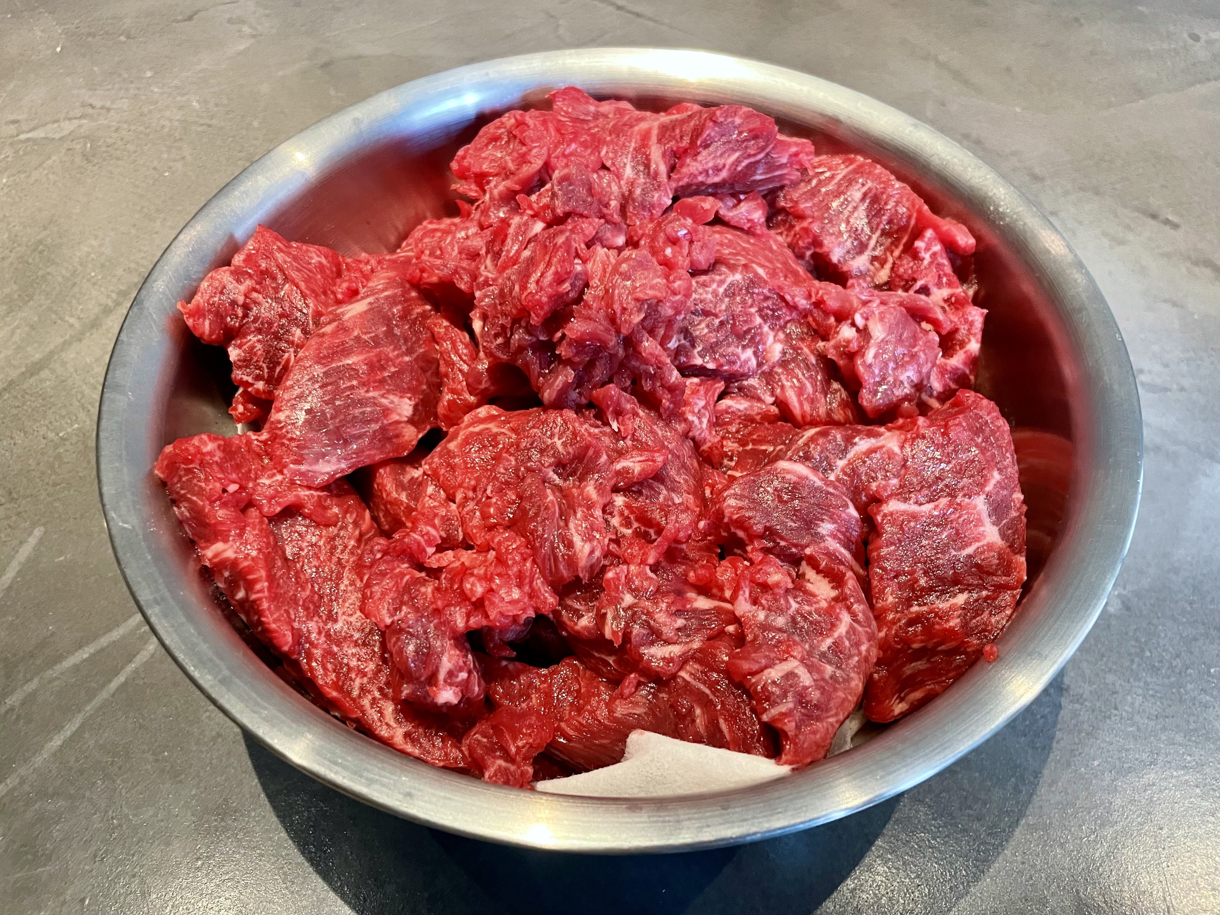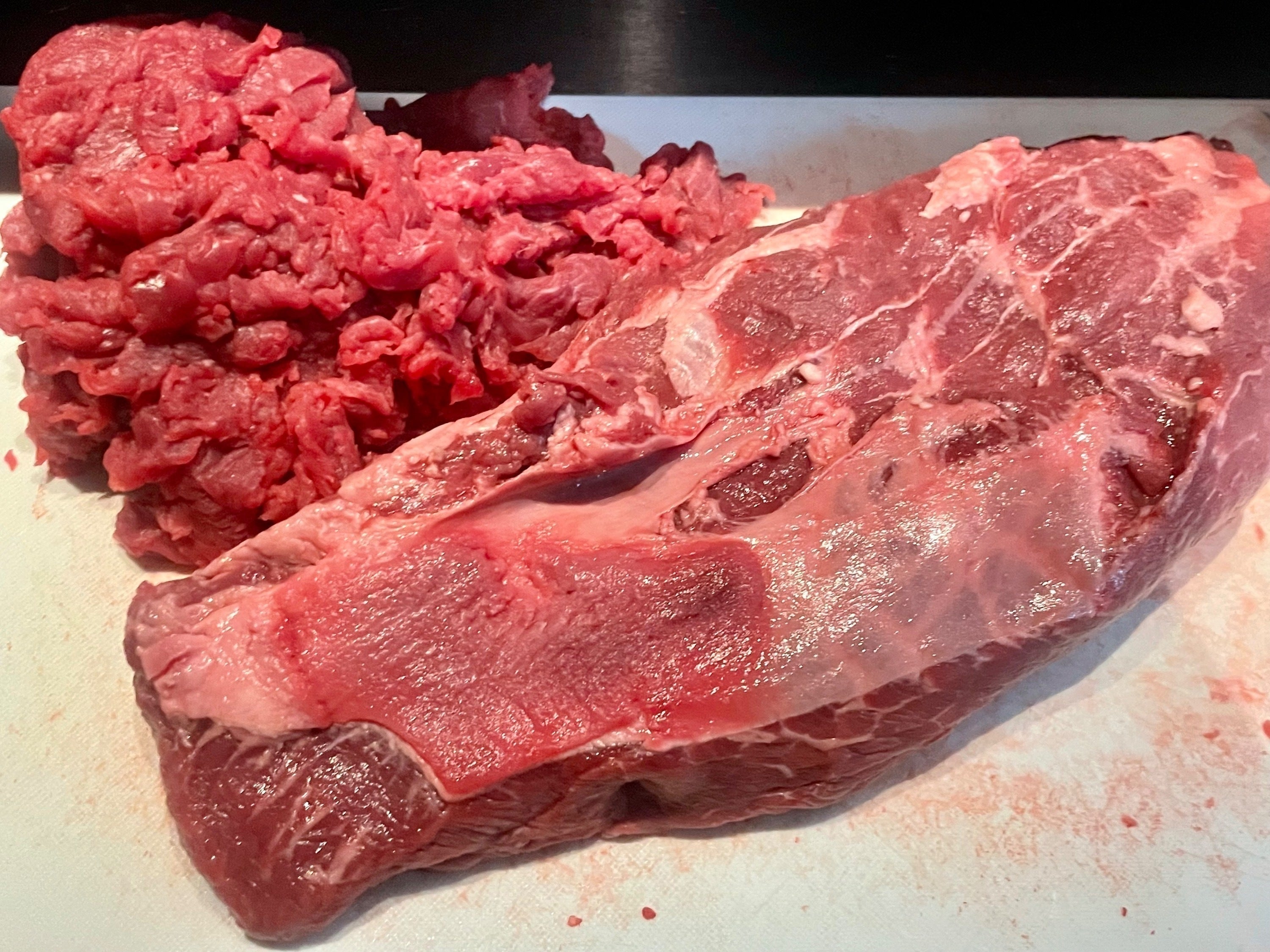 まず、ハンバーガーの主役のパティ(肉)は、柔らかく程よい脂身の入った赤身肉のアメリカ産ミスジ(肩甲骨内側の希少部位)を使っています。