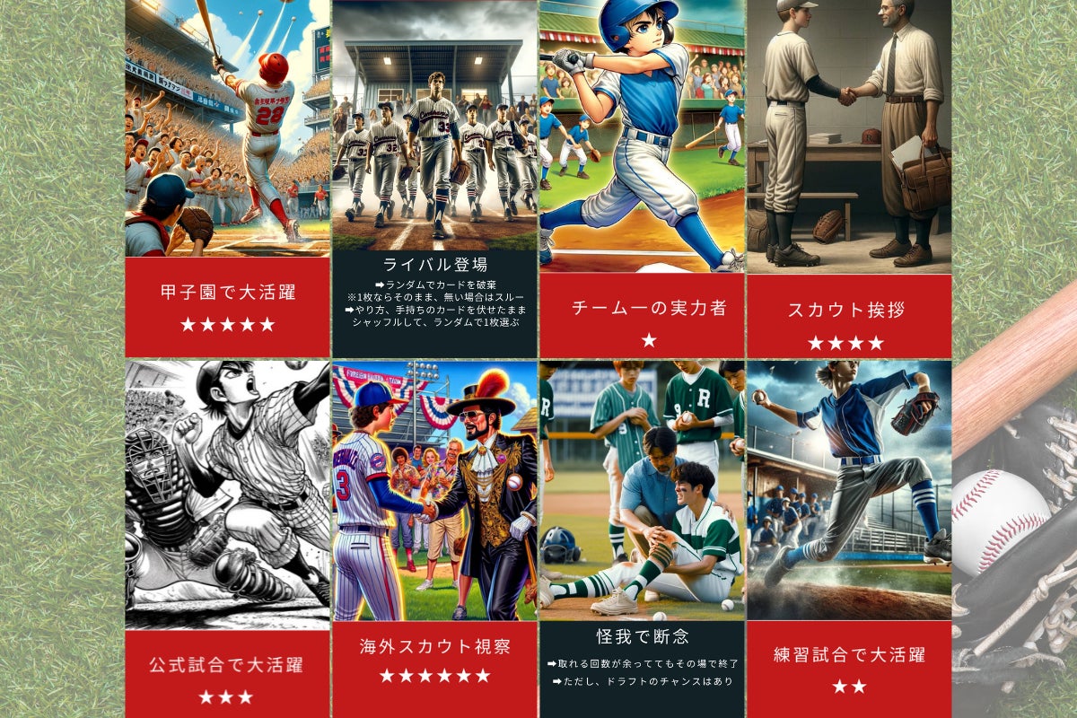・「野球人生」専用のカードと8面体のサイコロを使用します。