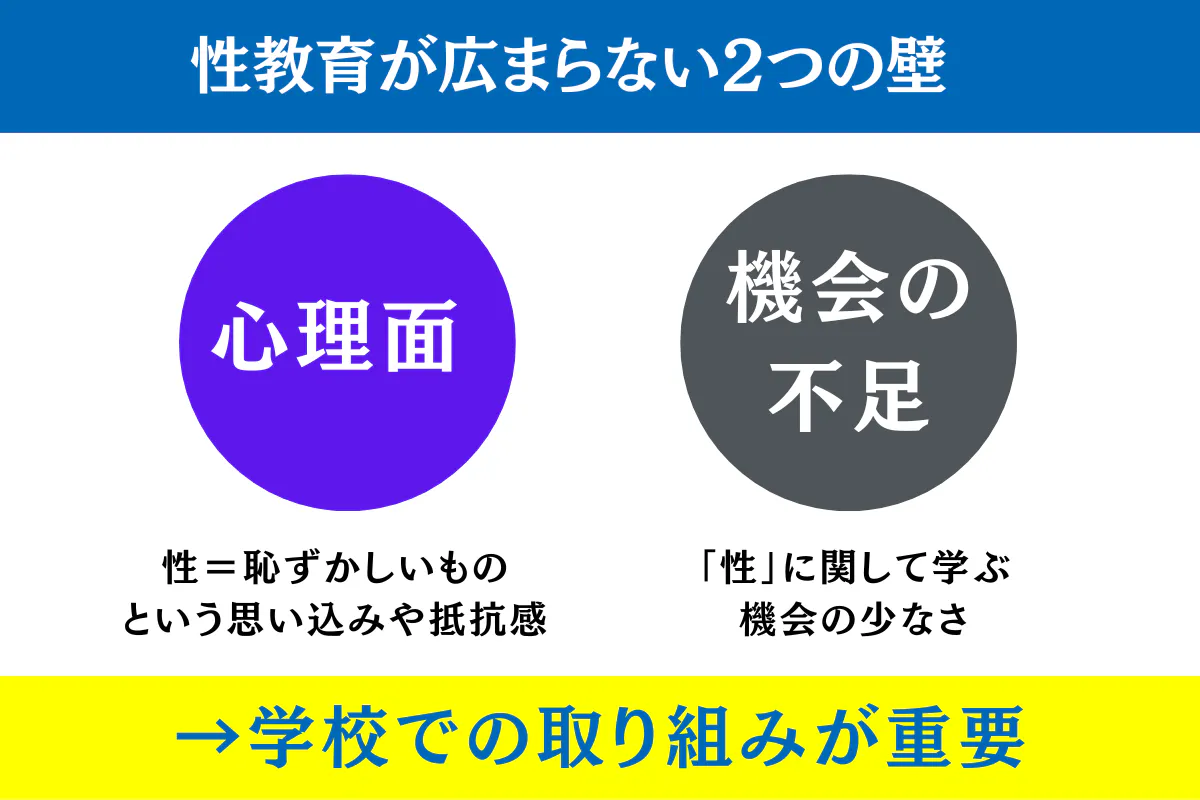 性に関する思い込みや学ぶ機会の不足が原因となり、大人自身が性について学ぶことに抵抗感があるのです。