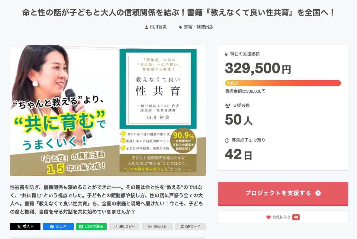 ※上記の理由から、リターンに「学校向け性共育(1校1学年)ギフト講演」もご用意しています。こちらもぜひご覧ください!