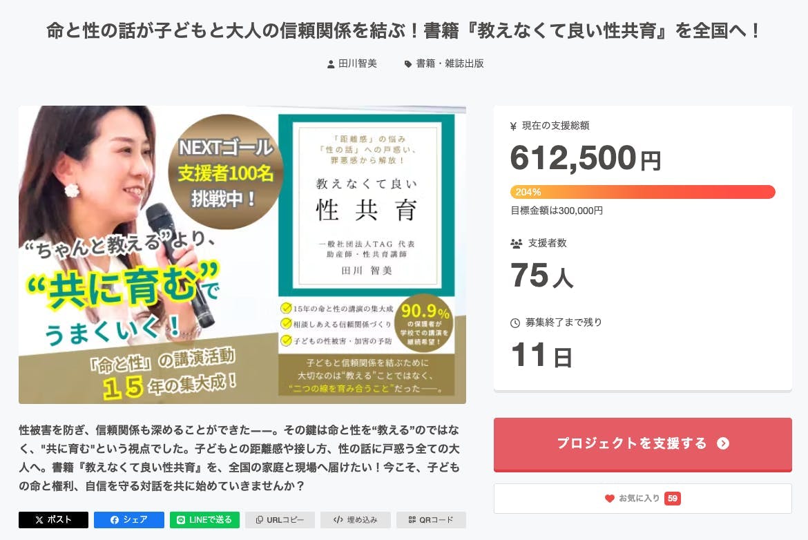 ご支援・応援いただけたおかげで、『教えなくて良い性共育』の書籍出版が実現できます。この形で「命と性の話」を社会に届けられることに加えて、さらに新しい挑戦を始めたいと思います。