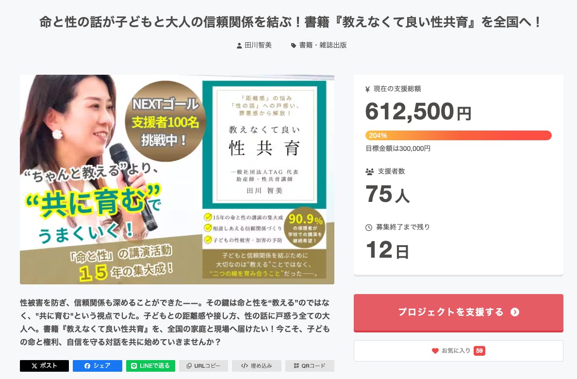 スタートから35日が経過し、現在75名のあなたから612,500円のご支援をいただいています。応援、ご協力ありがとうございます!