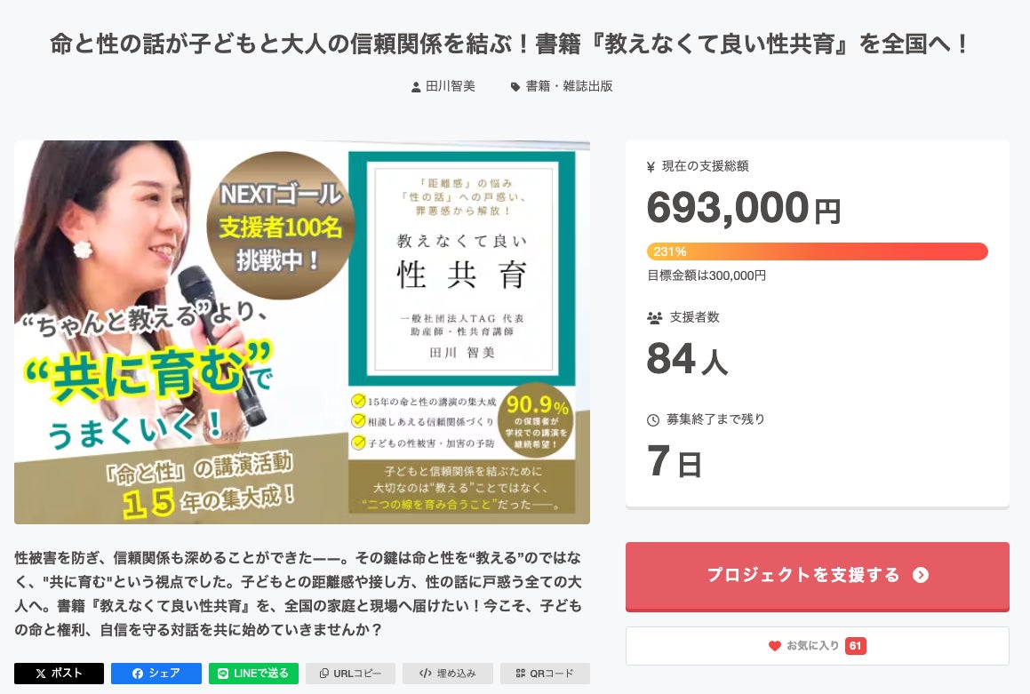 クラウドファンディングプロジェクトですが、ついに終了まで【あと7日】となりました!