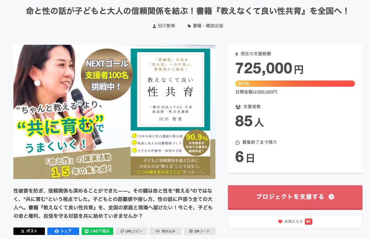 クラウドファンディングプロジェクトですが、終了まで【あと6日】となりました!