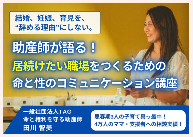 今後取り組んでいきたいことの一つが、「子育て・妊娠・出産を辞める理由にしない職場づくり」のサポートです。