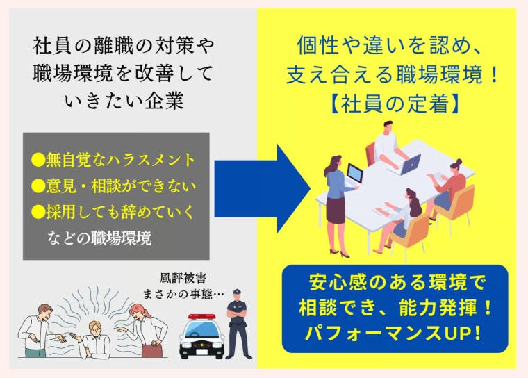 違う立場・境遇の社員に対して、無意識の偏見(アンコンシャスバイアス)があることで、離職や出産を機に仕事を辞めざるを得ない現実を生んでいます。