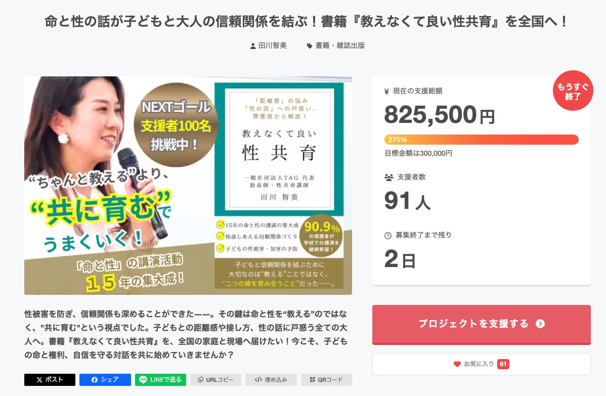 クラウドファンディングプロジェクトですが、終了まで【あと2日】となりました!