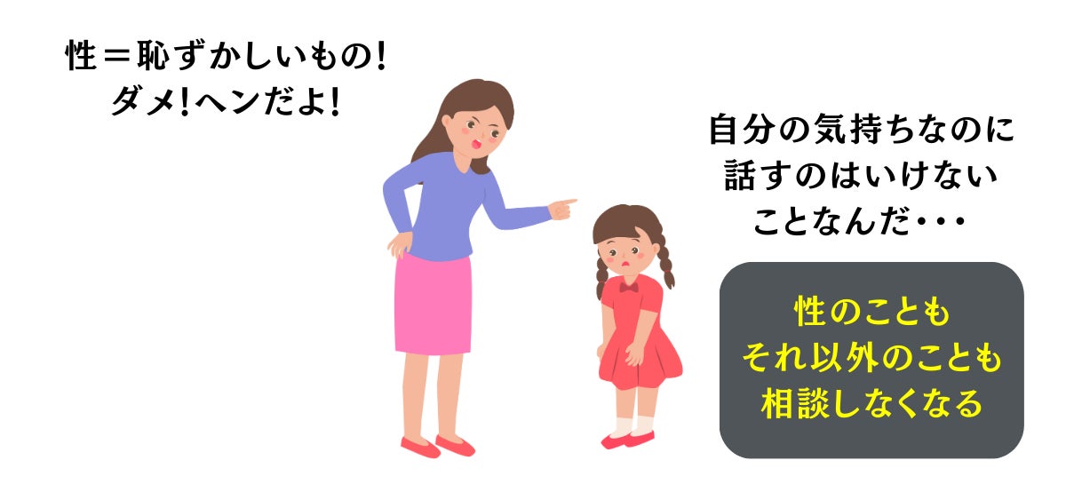 そういった言葉を受け続けた子どもは性に関する相談をしてくれなくなりますし、性以外のことも話してくれなくなってしまう危険性があるのです。