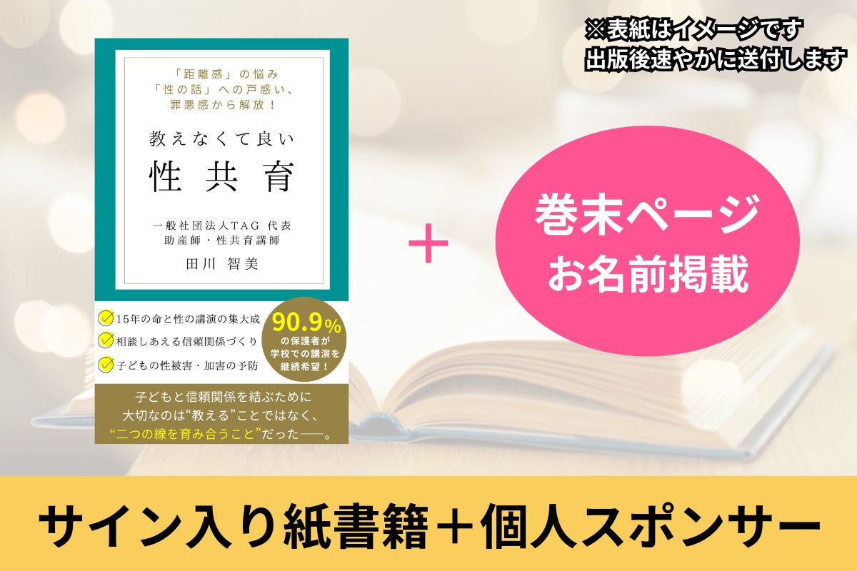 2025/09/01 16:08助産師・性共育講師の田川智美です。昨夜23時59分59秒をもってクラウドファンディングプロジェクト終了いたしました!104名のあなたから890,500円のご支援をいただいています。47日間の挑戦、本当にありがとうございました。このプロジェクトを通じていただいたご支援・応援のひとつひとつが、私にとって大きな励みとなりました。人生初の出版、そして初めてのクラウドファンディングですから、スタートは「不安」や「戸惑い」ばかりでした。「どうすれば伝わるんだろう?」「タブー視されやすいテーマ・・・支援や応援をしてくださる方がいるのかな?」そんな想いでいっぱいの中、スタートしたのを覚えています。性は「恥ずかしいもの」ではなく「大切なもの」今回の挑戦で何よりも大切にしたのは、このメッセージです。「性=恥ずかしいこと」ではなく、「性=大切なこと」へと解釈を切り替えていくこと。ご支援や応援メッセージを通じ、「その通りだよね」「子どもたちに伝えてほしい」「大人も一緒に学べば良いんだよね」という共感の声をたくさんいただき、毎日配信する勇気をもらいました。「教える」よりも「共に育む」でうまくいく!子どもたちは大人の姿勢を見ています。「プライベートな話を相談しても否定されないのかな?」「気持ちをわかってくれる人なのかな?」と。私たち大人も完璧ではありません。学校の先生方も、教育支援者の方も、企業の経営者の方も、「命と性の話」で悩まれていて、ご相談を受けてきました。3児の母である私も、悩んできました。でも、そもそも「命と性」に関する教育を受けてこられなかった世代でもあります。だったら、「子どもと向き合う中で、共に育み合える価値がある」という解釈に切り替えた方が豊かなのではないかと思うんです。応援・ご支援くださった、あなたへ心からありがとうございます。まだまだ性の話はタブー視されがちです。いきなり「性を学びにセミナーに行こう!」とか「学校で行われる命・性の授業に参加しよう!」とはなりにくいものです。ただ、「書籍」という形で世に届けることで、まず自宅で知っていただくことができます。子どもからの性の質問を受けて悩んでいる方や、距離感・接し方で悩まれている方の選択肢を増やしていただきありがとうございます。ここから書籍のデザインや企業スポンサーの方々の紹介記事、個人スポンサーの方々のお名前の掲載を進めていきます。今回いただいた応援メッセージを胸に、これからも、「子どもたちの権利や未来を守る輪」を大きく育てていきたいと思います。もし、ご質問や相談などがありましたら、InstagramやFacebookのDMやホームページのお問い合わせフォームなどで気軽に送信いただけると嬉しいです。https://www.facebook.com/tomomi.tagawa.501/https://www.instagram.com/tag_tomomi/https://www.nanairo-mw.com/引き続き、よろしくお願いいたします。田川 智美【書籍企業スポンサーのご紹介】(ダイヤモンドスポンサー)医療法人大宮林医院(産婦人科)理事長 林 正敏 様http://www.omiyahayashi.com(ゴールドスポンサー)株式会社インクルージョン藤田 直 様https://inclusionosaka.com/ インクルージョンが運営されている、大阪市東淀川区にある放課後デイサービス「いんくるーじょん東淀川様」でも性共育講演・研修を実施させていただいております。ぜひご覧ください!https://www.youtube.com/watch?v=yMPjfAOXT9I&t(シルバースポンサー)株式会社博愛社村上 武白 様https://www.hakuaisha.jp/【書籍10冊ギフト&個人スポンサーのご紹介】久豊 満 様株式会社Act One 様ママの素オンラインストアhttps://mamanomoto.com/(支援日順で掲載しております)【書籍個人スポンサーのご紹介】株式会社インクルージョン 長岡まいこ様だーやま 様水野由樹(やーじー) 様立道久美子 様井口直子 様荒川ゆり子 様大藤 勝 様小堀 彩子 様見沼のたかし 様平澤めぐみ 様元教師ながめ先生 様西小PTA会長 水石 潤 様VIDAカイロ大宮整体院 古川 一就 様性の伝道師 助産師ミッキー(清水幹子) 様松永 明大 様山田 友紀 様漆原 絢子 様日野 沙織 様大宮東小学校元PTA会長 長坂 兼一 様木下 竜也 様ちょう家のあやさん 様新あすの会 江藤眞奈美 様応援女神Makko 様内田 雅士 様新藤 友啓 様岡嶋 俊哉 様MASA 様うすいあつみ 様小泉 万里子 様島田 裕美子 様大橋 隆重 様森島 治子 様ふじとも 様三橋亜希子 様中学校PTA会長・子どもの居場所事業ボランティア 佐々木 卓 様たまかあさん 様清水 俊佑 様星野幸子 様クロスハート大宮カイロプラクティック 様佐竹 純代 様下田さん 様WAX脱毛サロンKoKo 様たまみずき 様尾上 宗章 様皆川 美保 様小原 修 様はりきゅうアロマプラウ 永井 礼子 様中田 剛 様須田 達也 様高橋 応和 様鷲谷将太ヤス1064 様清水あけみ 様本山 喬也 様近藤 里咲 様多聞さん 様大山 伸善 様村上 恭子 様青木 みのり 様A.KIMURA 様るーみん 様あの国民的アイドルグループの後継者「漢塾」木村くん担当 水樹ハル 様がっきー 様(支援日順で掲載しております)【さいたま市内の