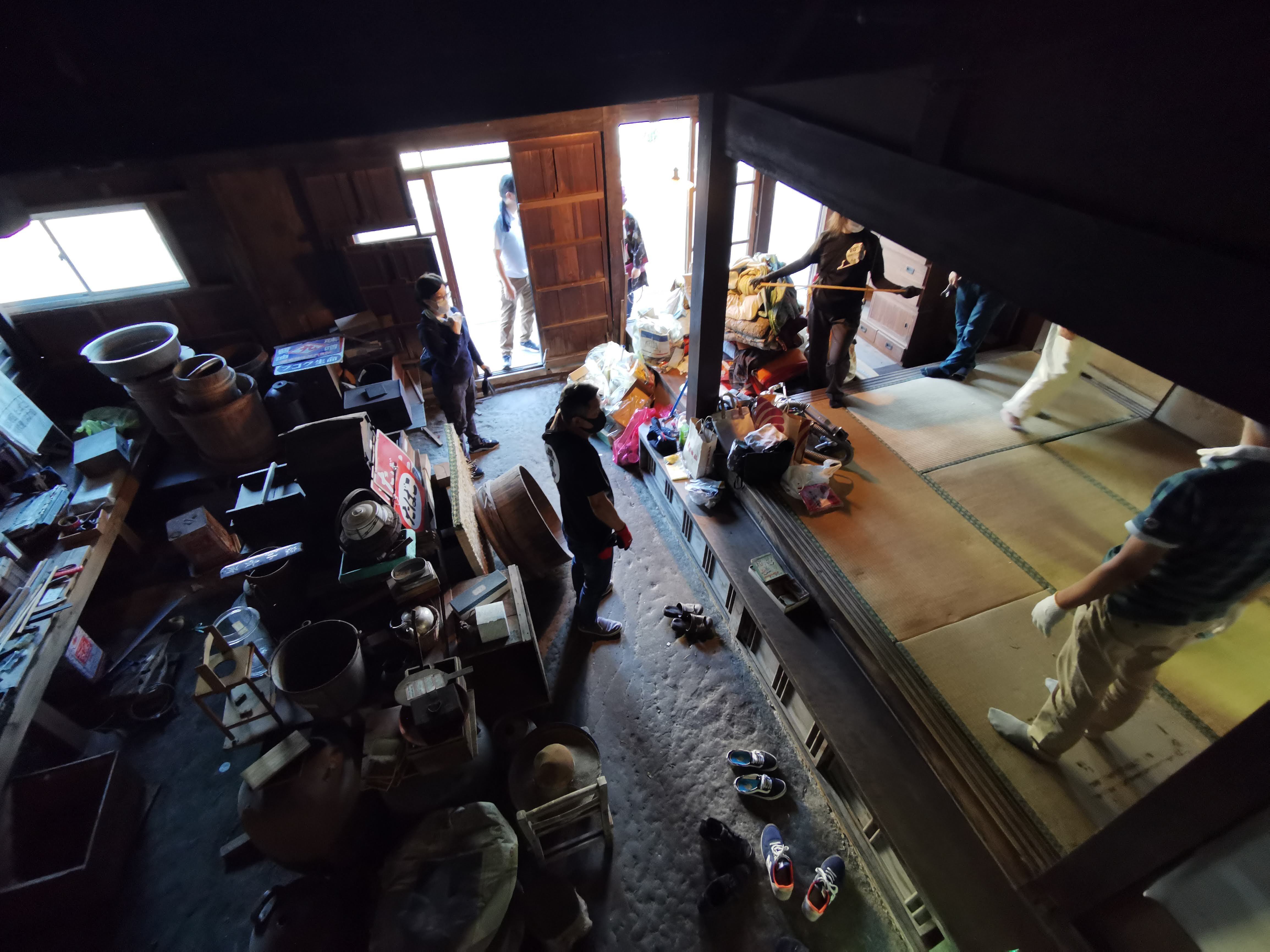 (↑2021年10月に地元内外の有志メンバーで集まった屋内の家財整理の様子。資料館で保管するものが見つかるほど歴史を感じるものがたくさん!)