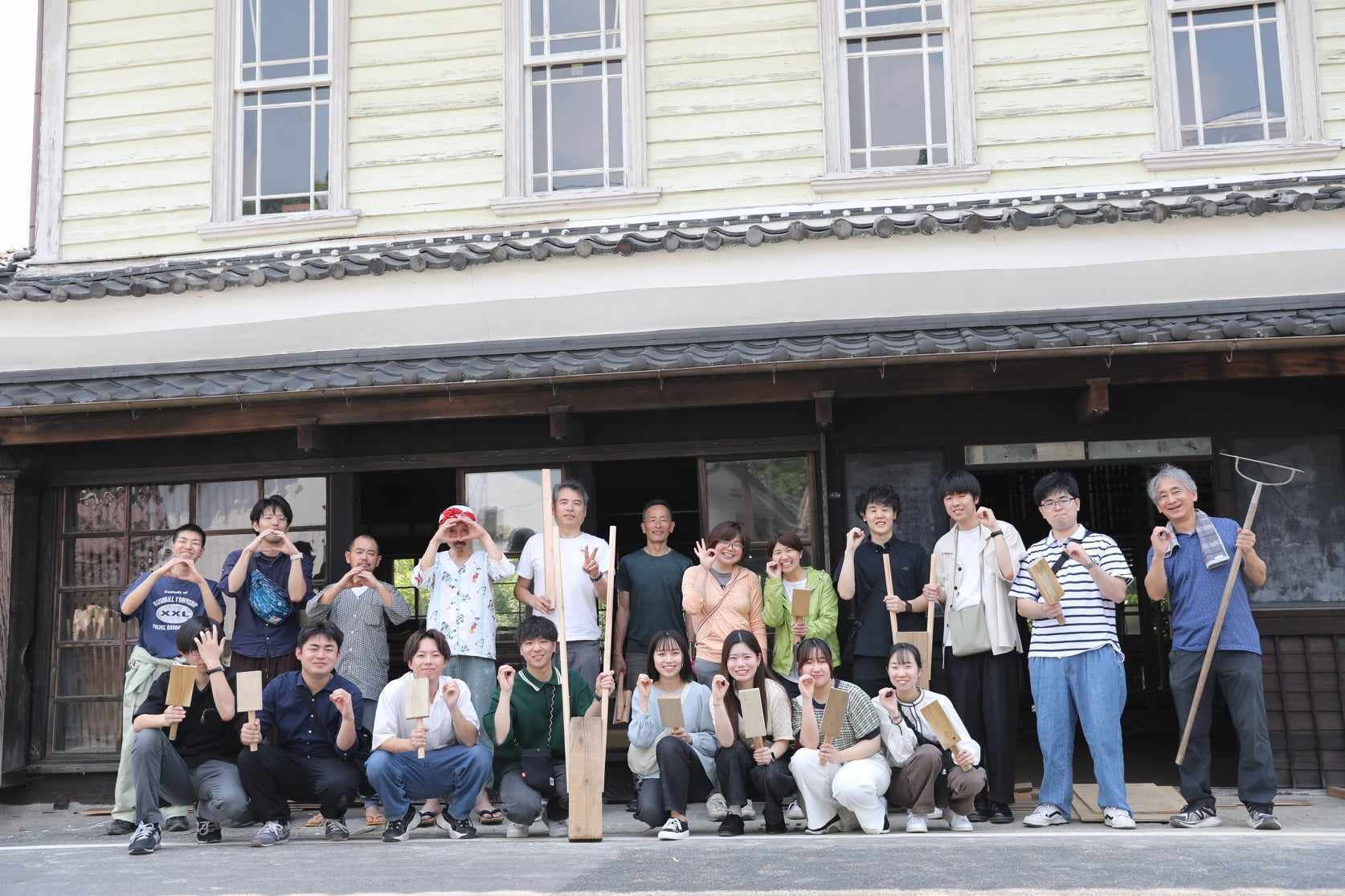 大人も子どもも、合わせて24名。大家さん、借主の私達メンバー、そして地元内外の方々含めて自分たちの手で再生した土間。