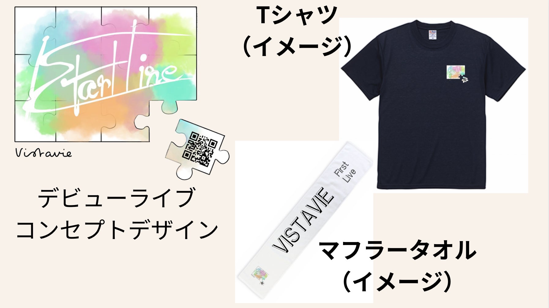 2024/05/04 15:21デビューライブのコンセプトデザインが決定しました!テーマは「スタートライン」です。全てはここから始まる。グループとして最初のスタートラインがここになる、その一歩を踏み出すライブを作り上げたいと思い、このコンセプトになりました。デザインをパズルのピースにしたのには理由があります。最初のピースが自分たちだとした時に、そこから繋がっていく人が増え、徐々に全体のデザインが出来上がっていきます。デビューライブの時はスタートラインとしてどれだけ大きなパズルのデザインが完成するかは分かりませんが、今後繋がりが増え、大きなパズルを完成させたいと願いを込めてこのデザインにしました。これからクラファンのリターン品にマフラータオルやTシャツを追加する予定です。今の段階ではイメージ画像ですが、このようなグッズを製作してライブ当日などに販売できたらと思います。ぜひ、クラファンのリターン項目の一つとしてご検討いただき、ご支援していただけると嬉しいです! もっと見る