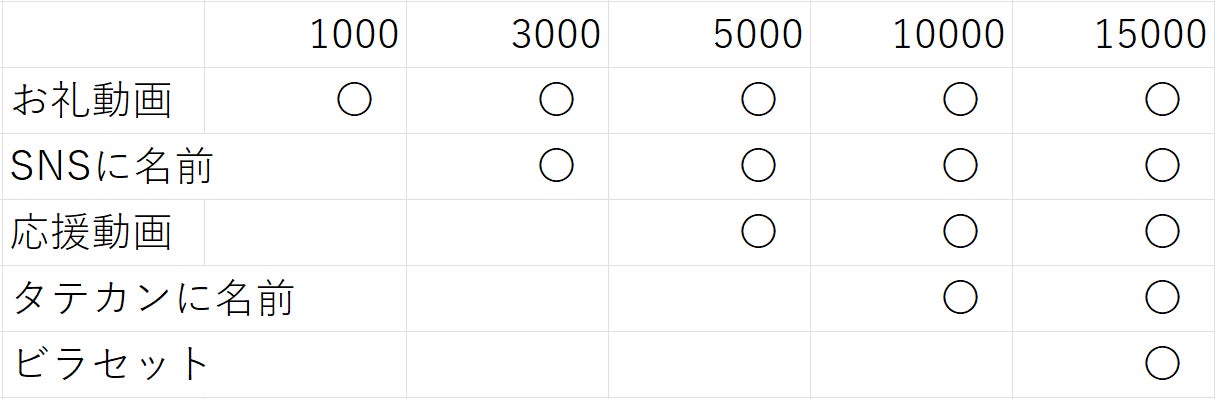 リターンとして、京大応援団によるお礼や応援の動画、SNSやタテカンに掲載する権利、またビラロードで受け取ったビラのセットなどを用意しております。SNSやタテカンに名前を載せることでも、新入生にクラウドファンディングなどを活用して大きなイベントをDIYで作り上げられることを伝えたいと考えておりますので、良ければご支援いただきたいと考えております。