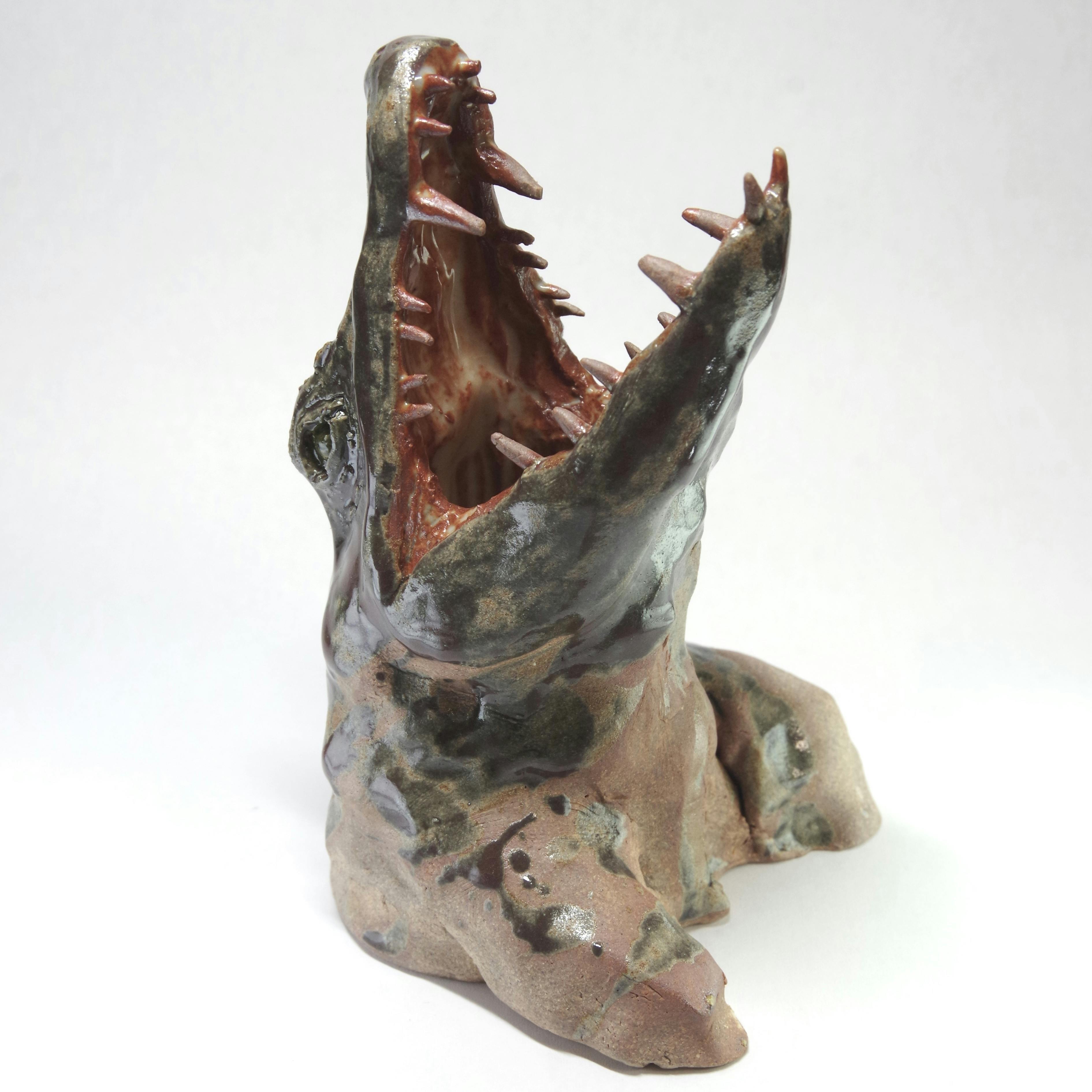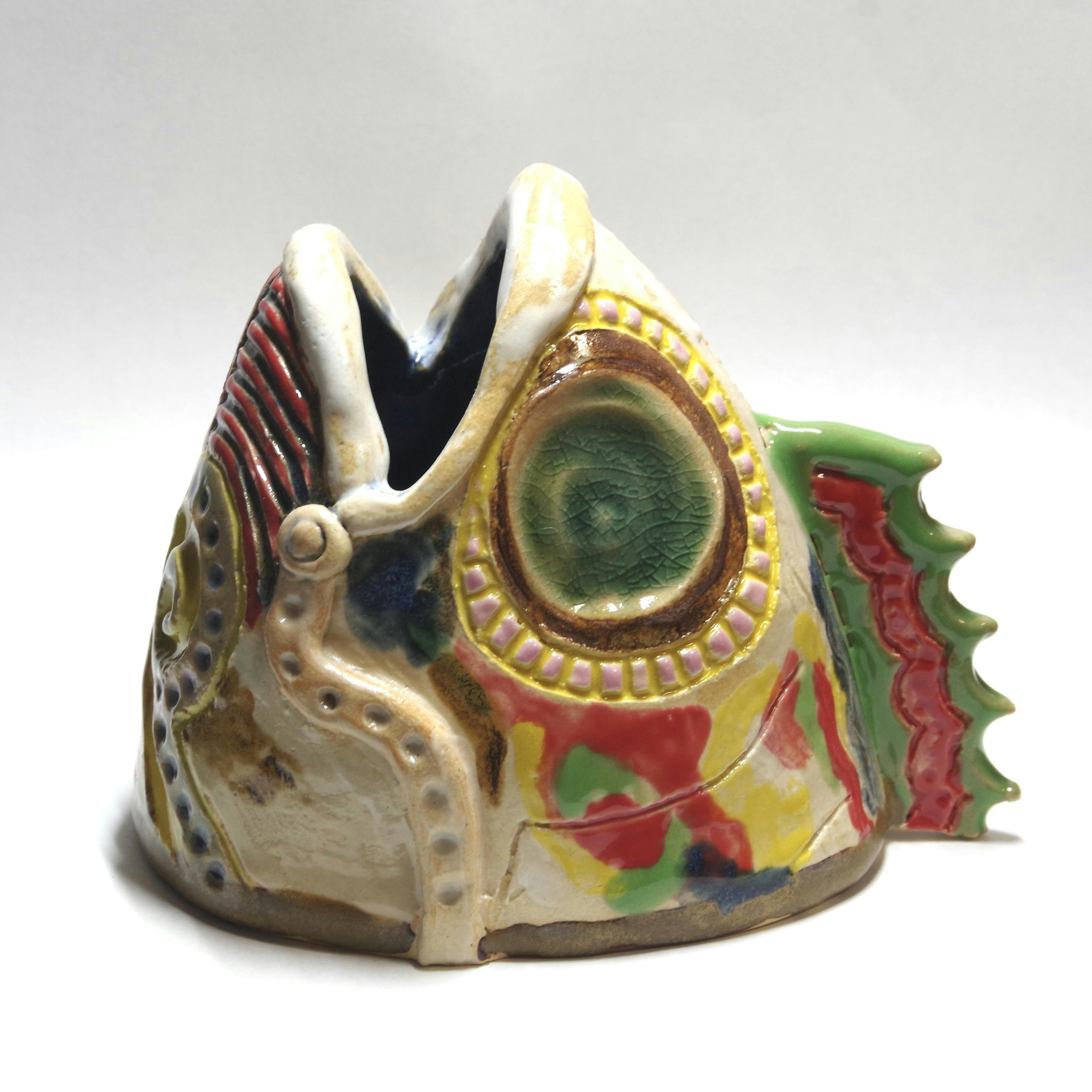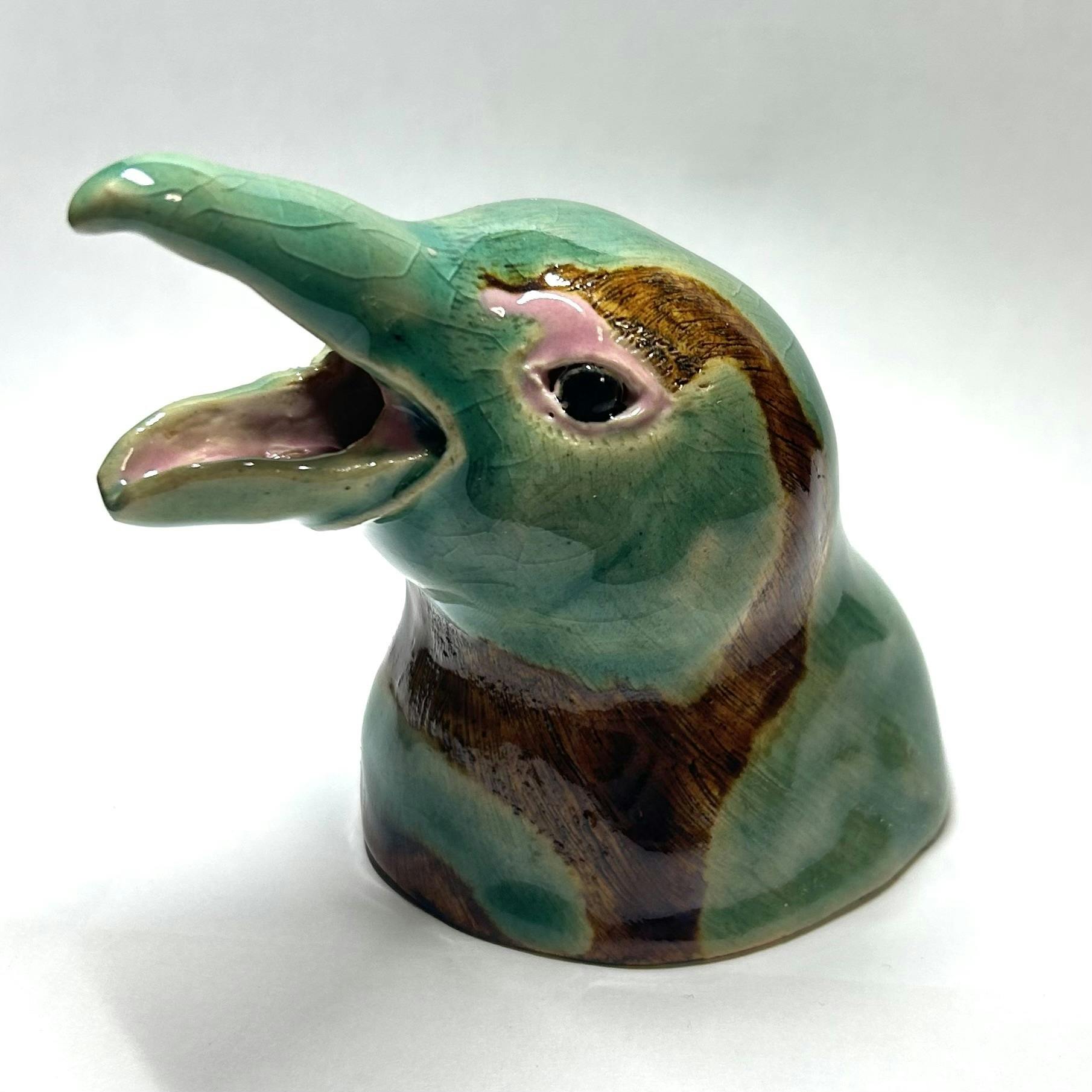縄文土偶からインスピレーションを受けて作製しました。古代から現代まで人と水生生物の永い歴史。お互いにとって良いことも悪いこともあっただろうな。