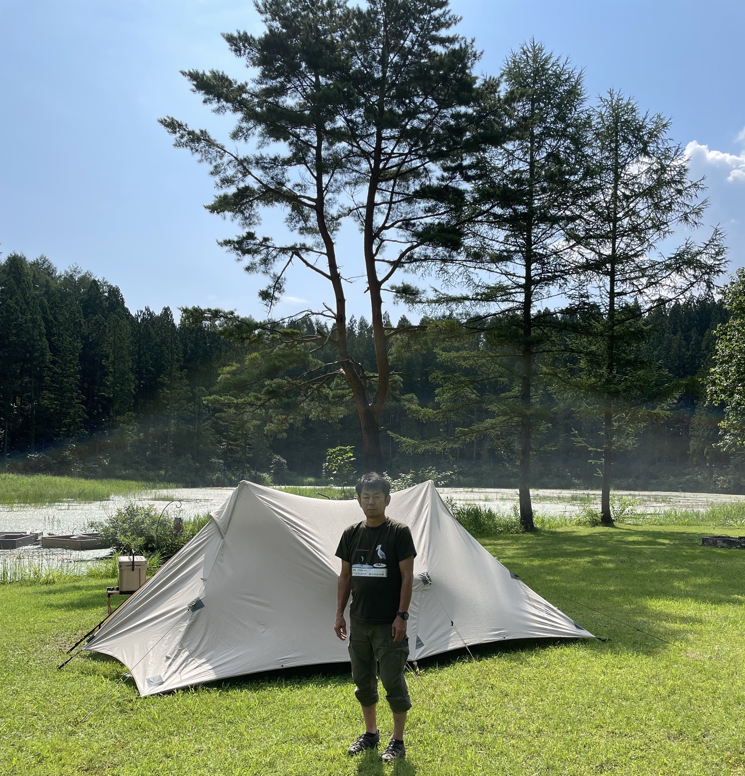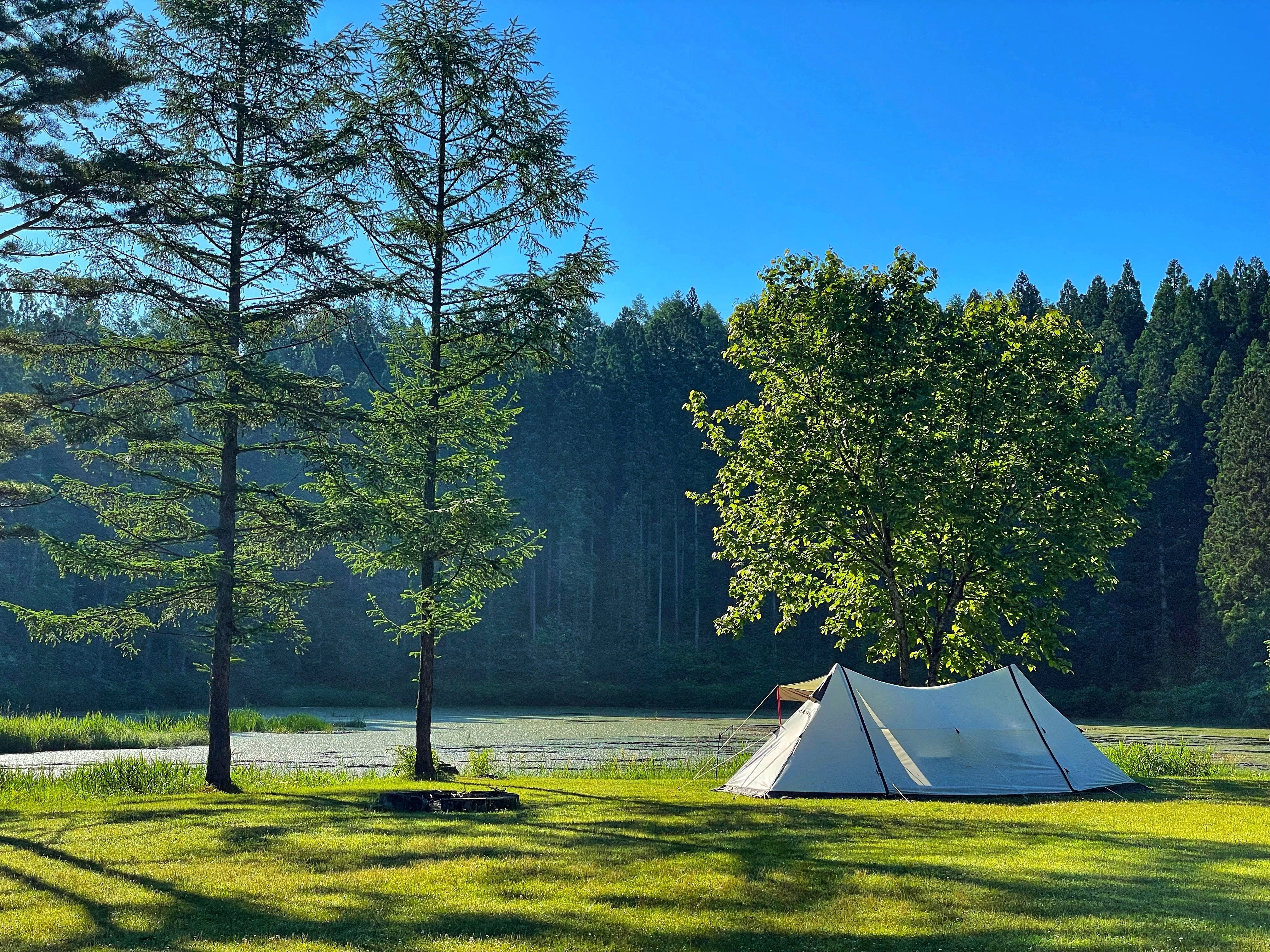 私は30歳頃からキャンプにハマり、自然に触れながら自分だけの世界に浸る時間を求めてきました。全国さまざまなキャンプ場でソロキャンプをしましたが、初めて「じゅんさい沼キャンプ場」に訪れたときは驚きと感動に包まれたのを今でも覚えています。じゅんさい沼を囲むように立ち並ぶカラマツや杉の景色はまるで北欧のよう。心が癒やされて一気にファンになりました。