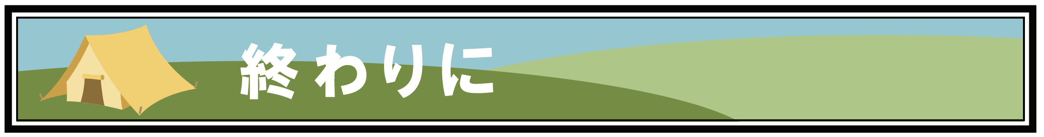 劇団にひき様より応援メッセージをいただきました!キャンパーならご存じ、キャンプブログ『今日もどこかで野遊びを』を運営している自然派キャンパー夫婦です。テント泊通算700泊を超え、美味しいお酒とプロの料理でお洒落に楽しんでいる様子が好評。私もいつも楽しみにブログを読んでいます。