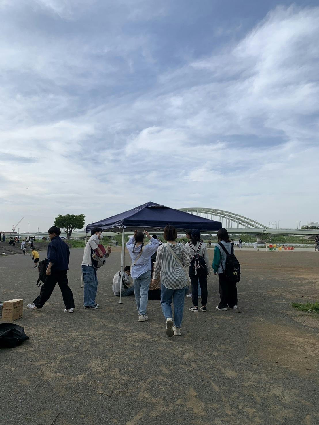 先日マルシェの会場である多摩川河川敷でテント張りの確認を行いました!