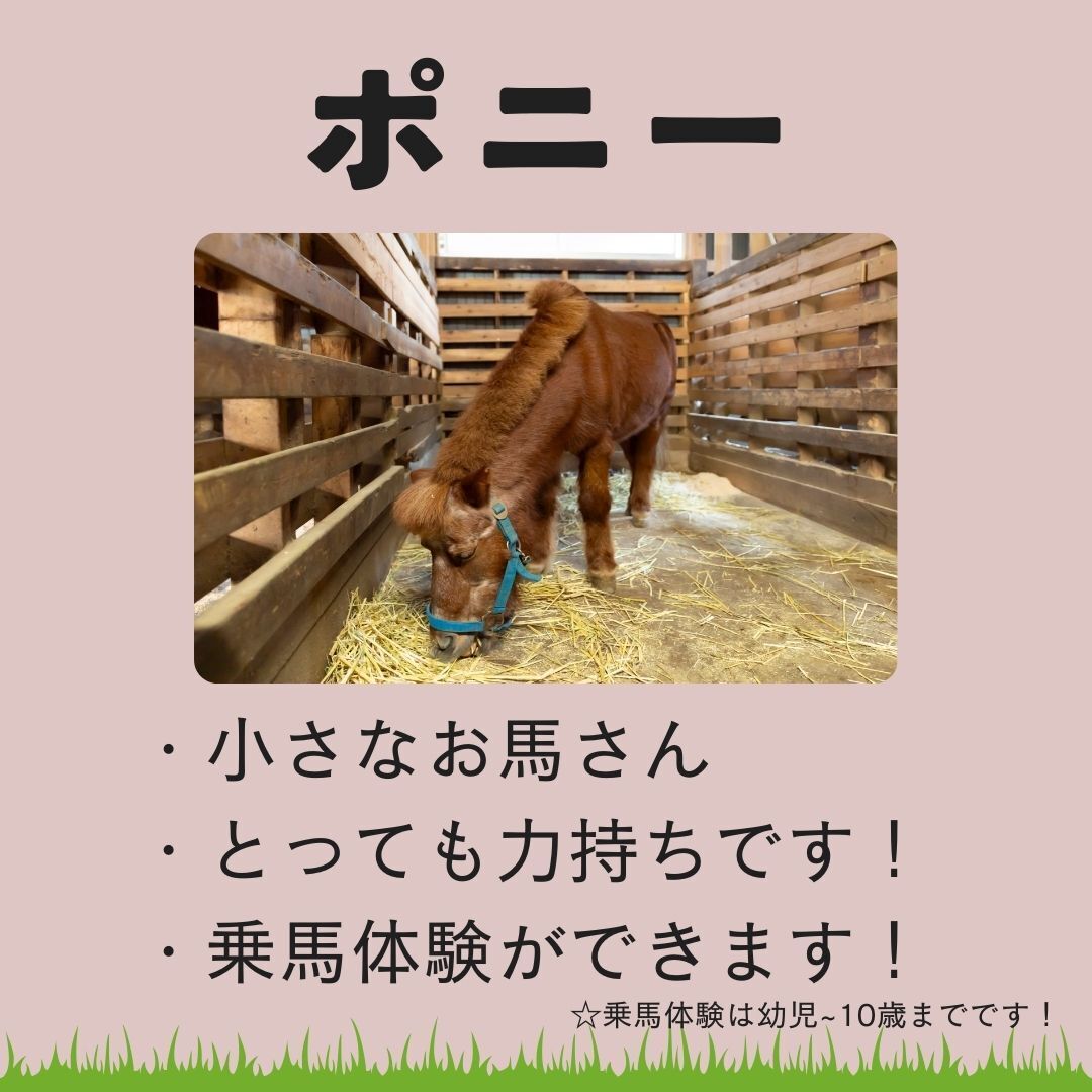 なんと、10歳以下のお子様までポニーに乗ることができます!ポニーと一緒に写真などいかがでしょうか?!