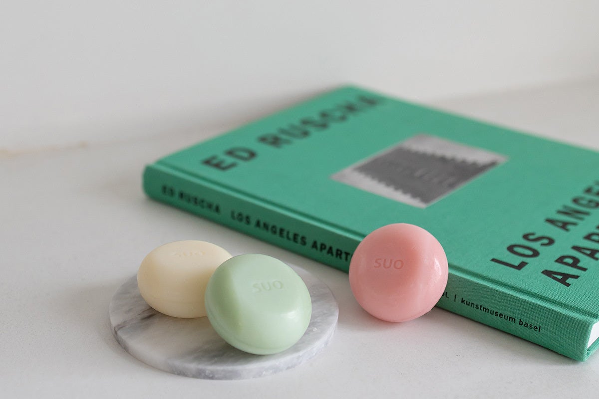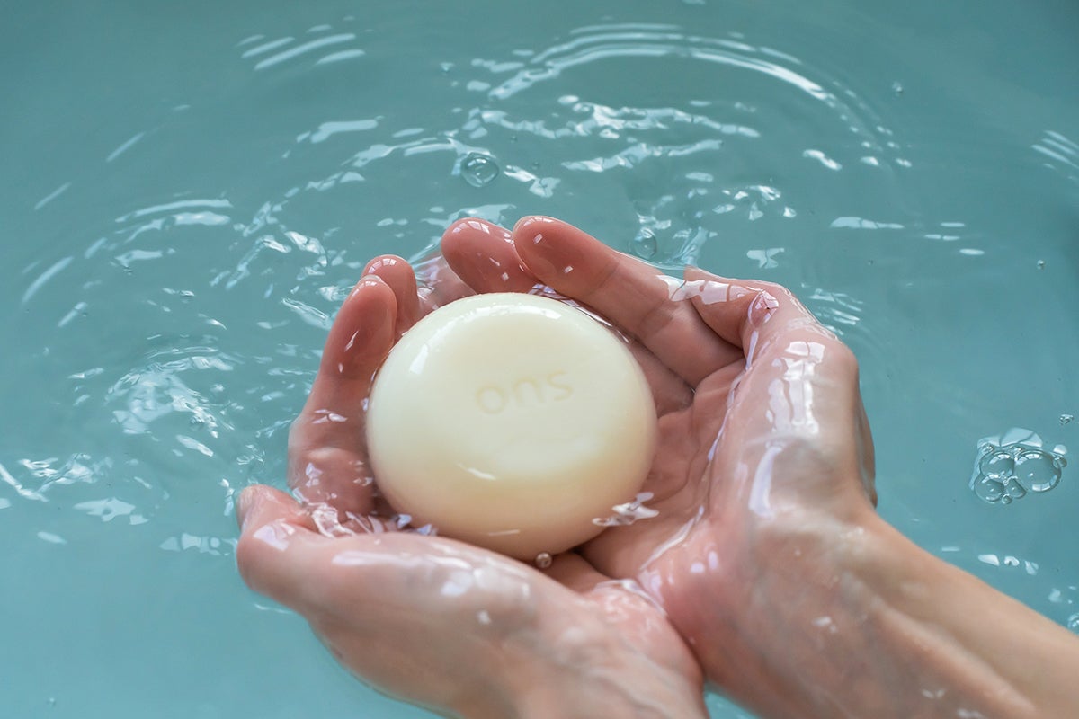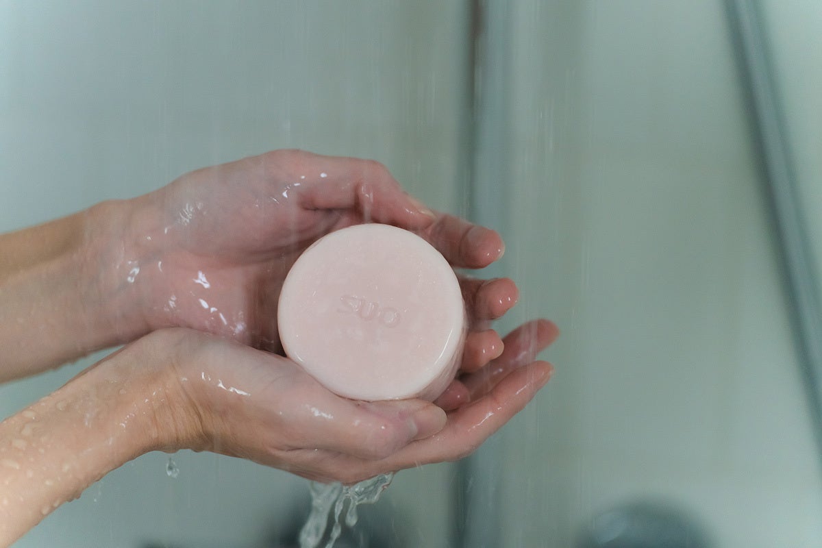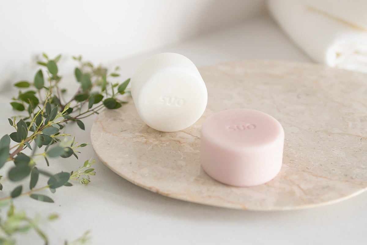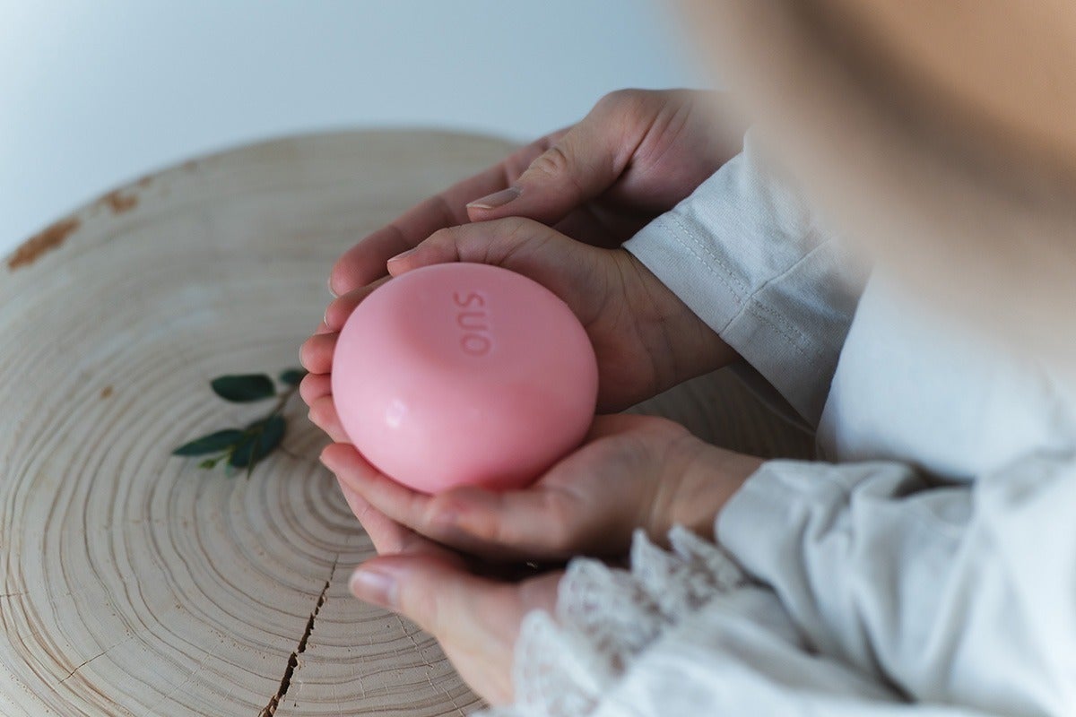 SUOのソープは、丸みのあるやさしい形状です。使いやすいように計算されたキュートなフォルムに愛情が込められています。