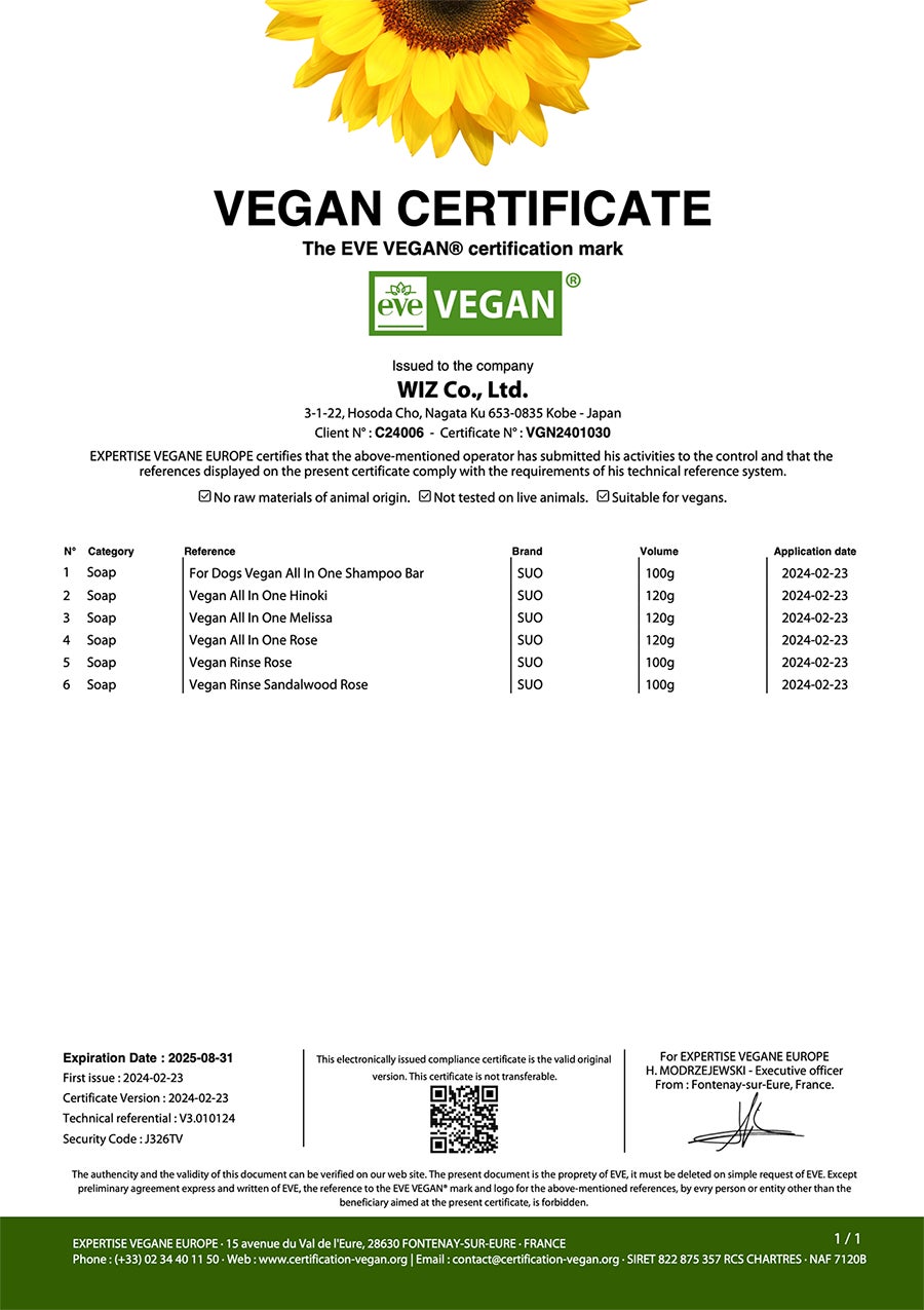 ■ヴィーガン国際認証「EVE VEGAN」取得