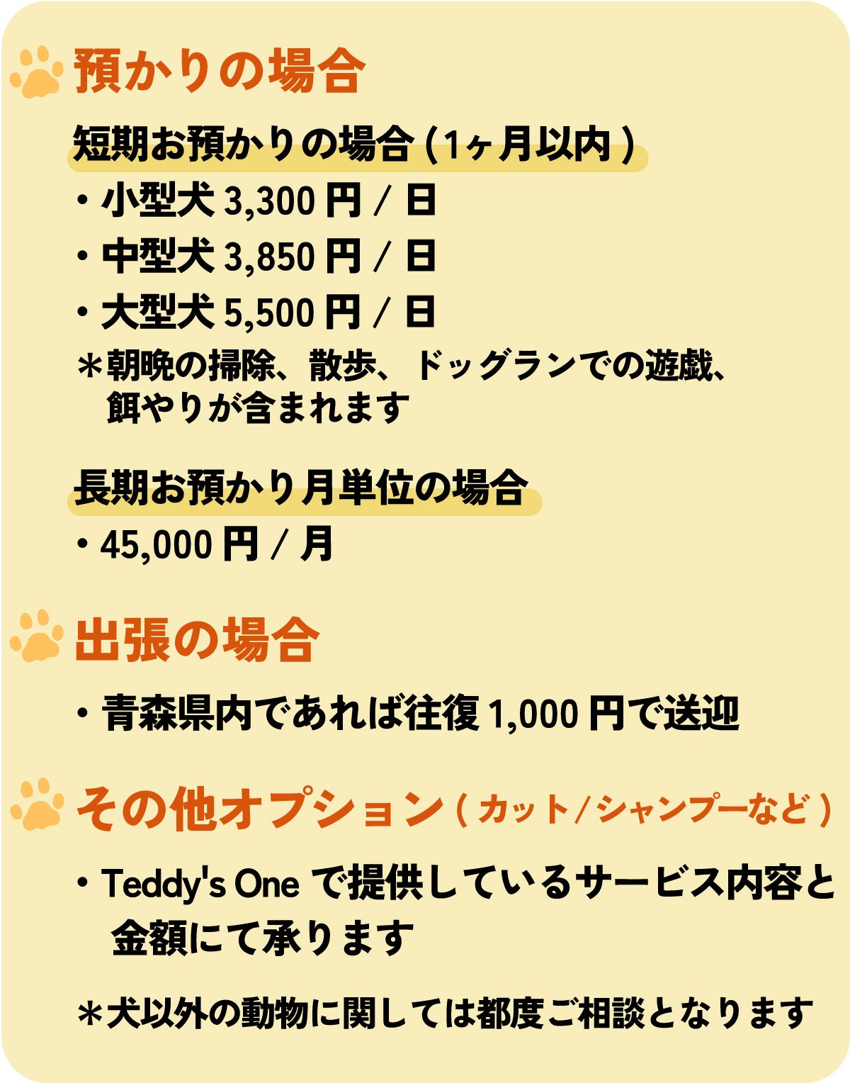 Teddy's Oneにてこれまで培ってきたノウハウを持ったプロの元、PUPUに住むペットや相談にこられた方のペットの飼育を担当させていただきます。