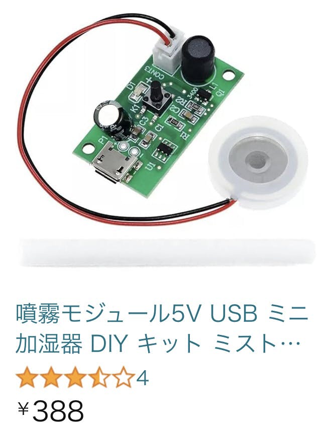 これは超音波式のミスト発生器で加湿器はこの部品さえ付ければ作れちゃうみたいです!