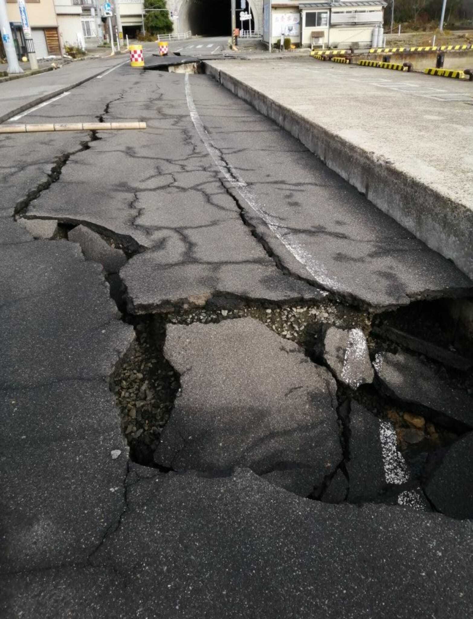 が、ひどくひび割れた漁港、崩落した道路、続く余震…。私たち家族も、車中泊を経て、避難所へ。