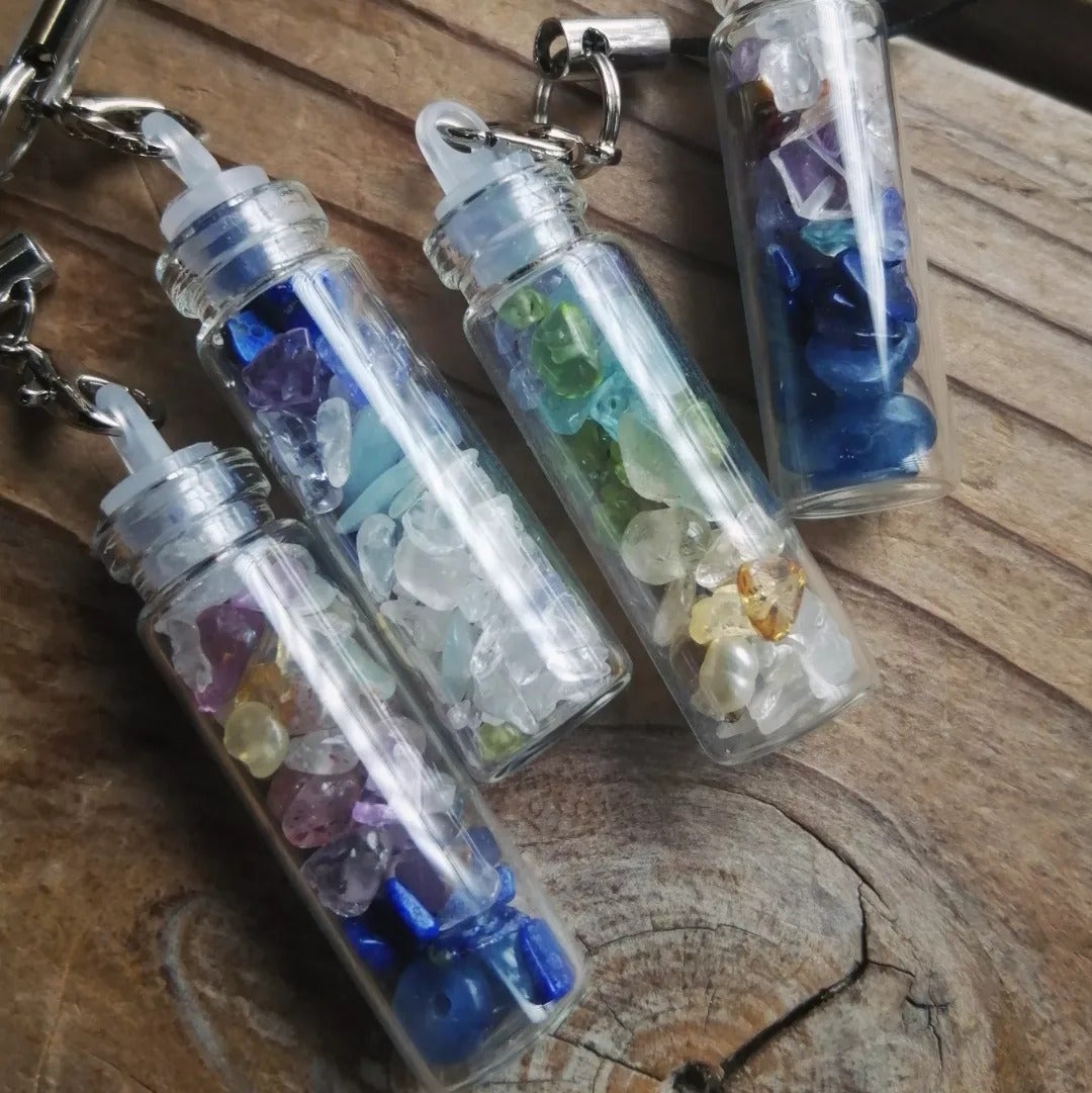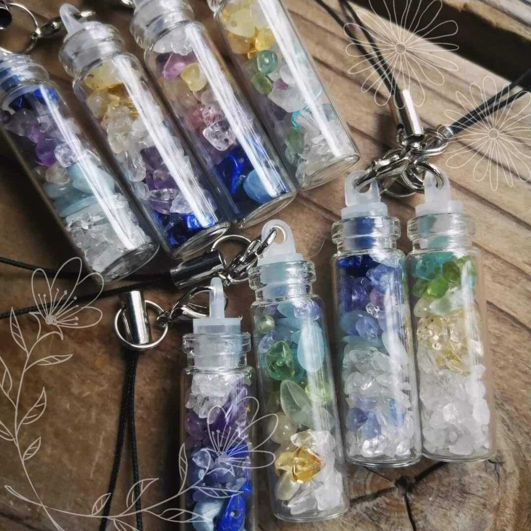 ボトルの中には、日々の美しい海、朝焼けの海、夕日の海、海の色の彩りが宝石で表されています。