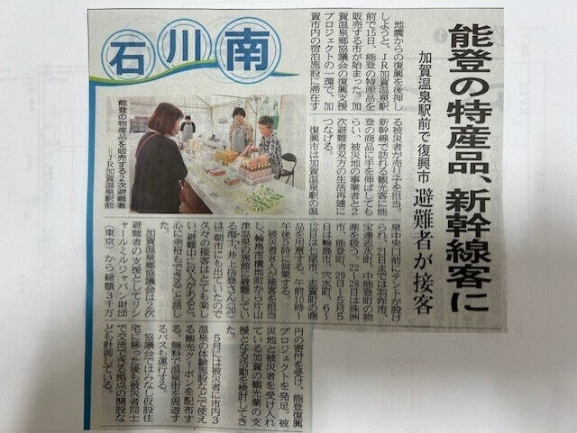 加賀温泉駅前で能登の特産品を販売する売り子を始めました。