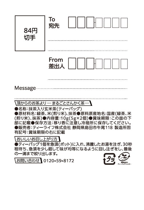 お茶より…「お茶」×「お便り」 お便りの形をしたパッケージにまるごとさんかく茶(お茶)を入れた商品