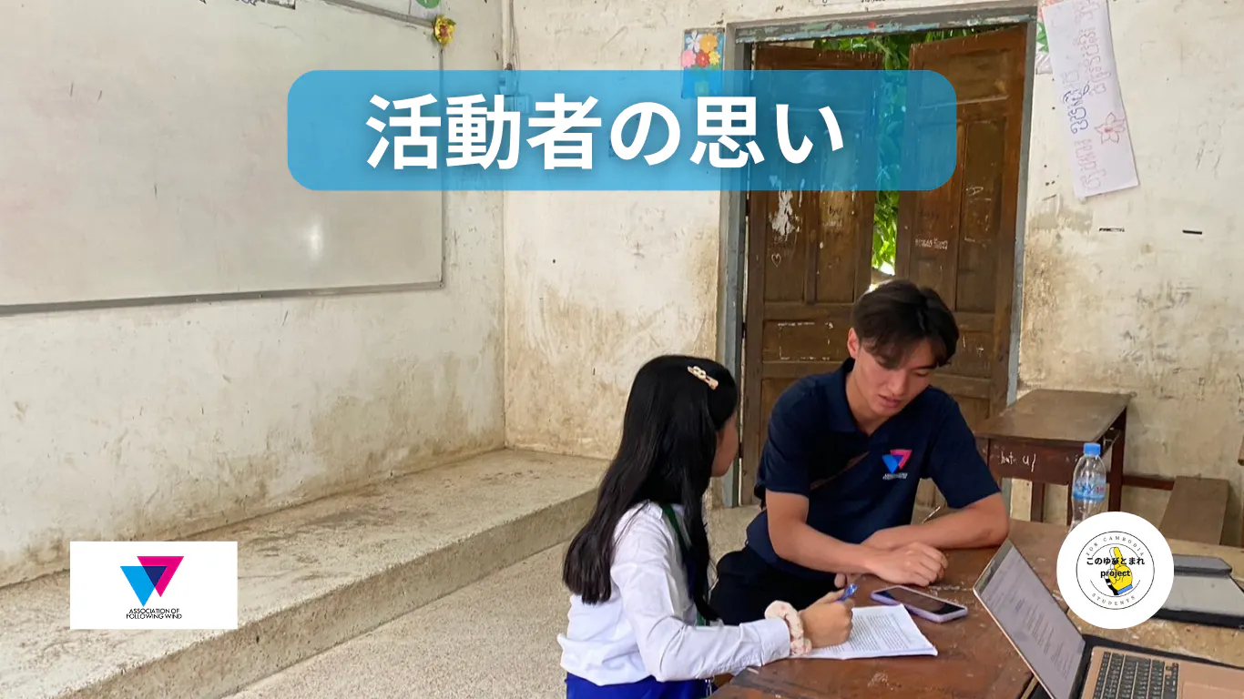 このようなカンボジア国内の教育に関するあらゆる問題を改善して解決するために、今回私たちのプロジェクトに応募してくれました。実際に日本の学校を見たり、学生と交流したりすることで日本とカンボジアでは教育システムにどのような違いがあるのか学ぶことができ、学んだことを将来彼女の夢である「先生」になることで、カンボジアの子どもたち、そしてカンボジアの教育機関の発展に貢献してくれると私たちは願っています。