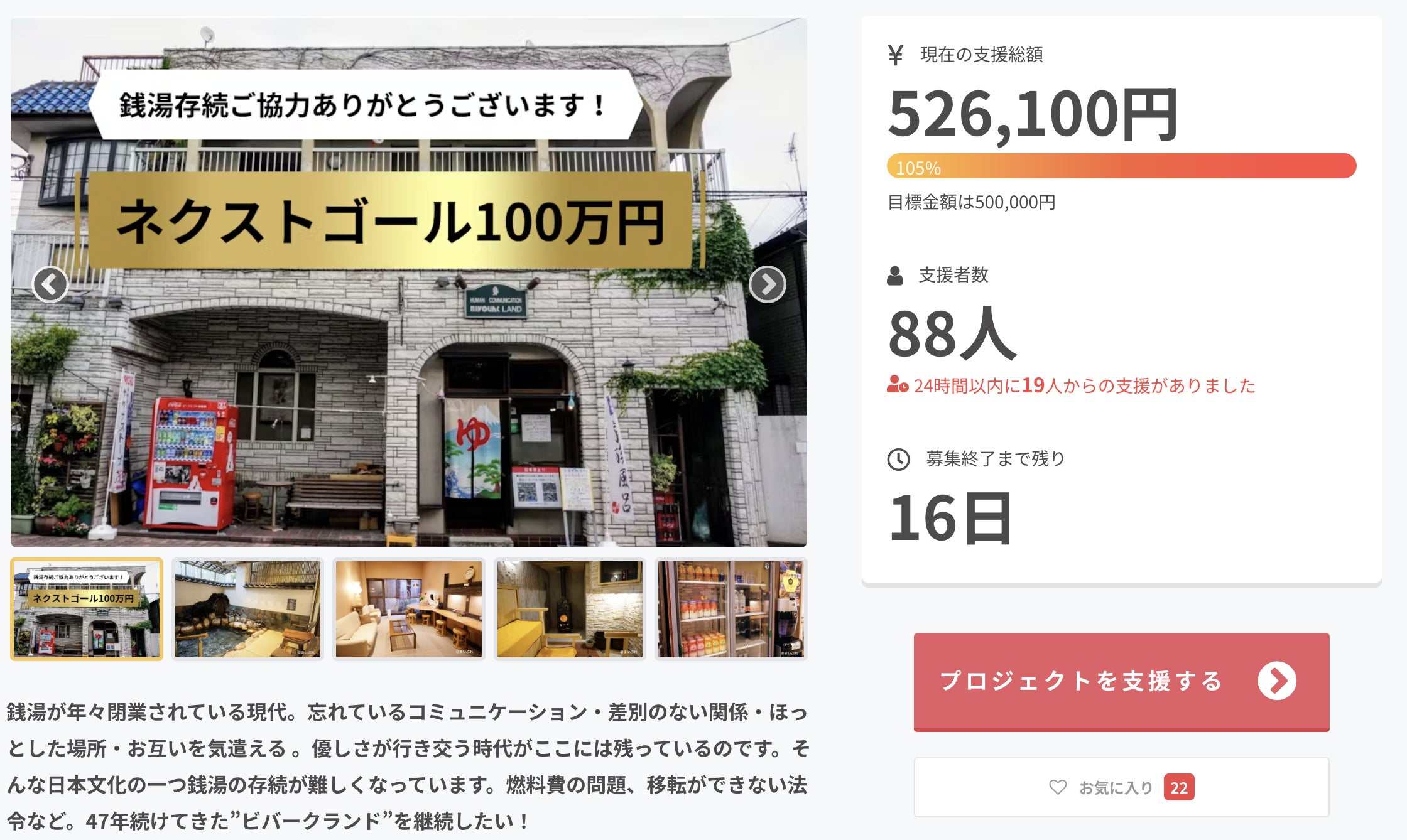 日本の文化、憩いの場『銭湯』を継続するためにお力をお貸しください!
