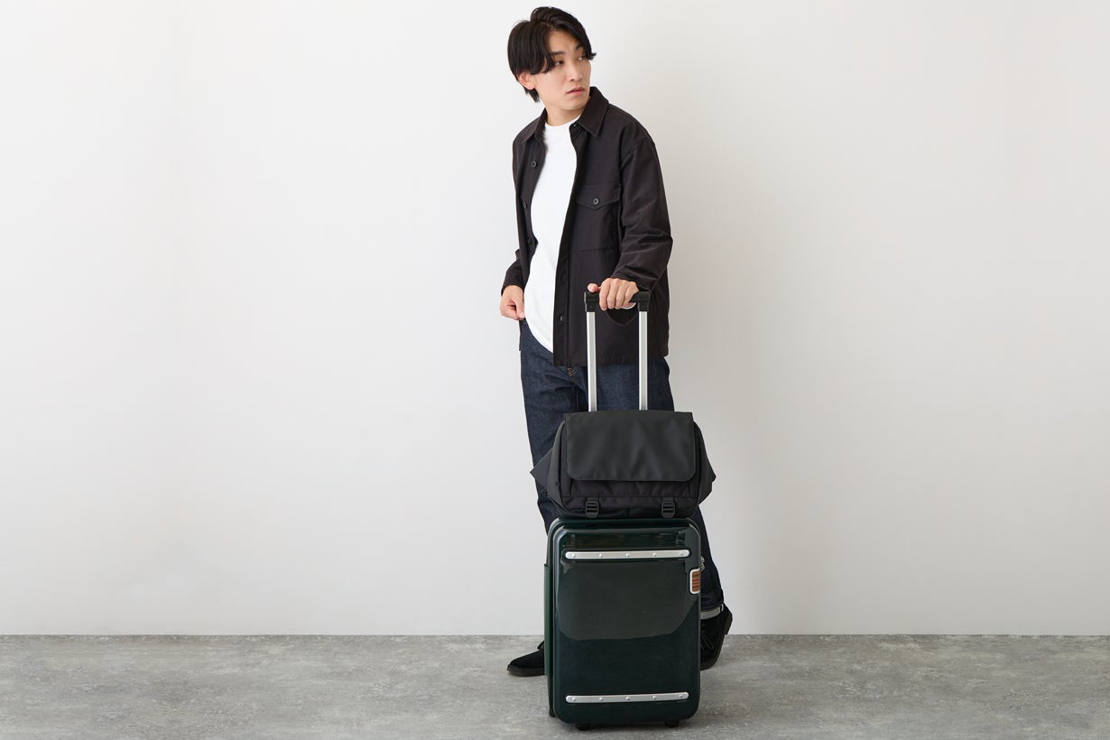 拡張が出来ることで、普段は必要最低限の荷物で身軽に出かけて、荷物が増えたときも拡張することで対応ができるので、いつでもこのバッグ一つで出掛けられる設計になっています。