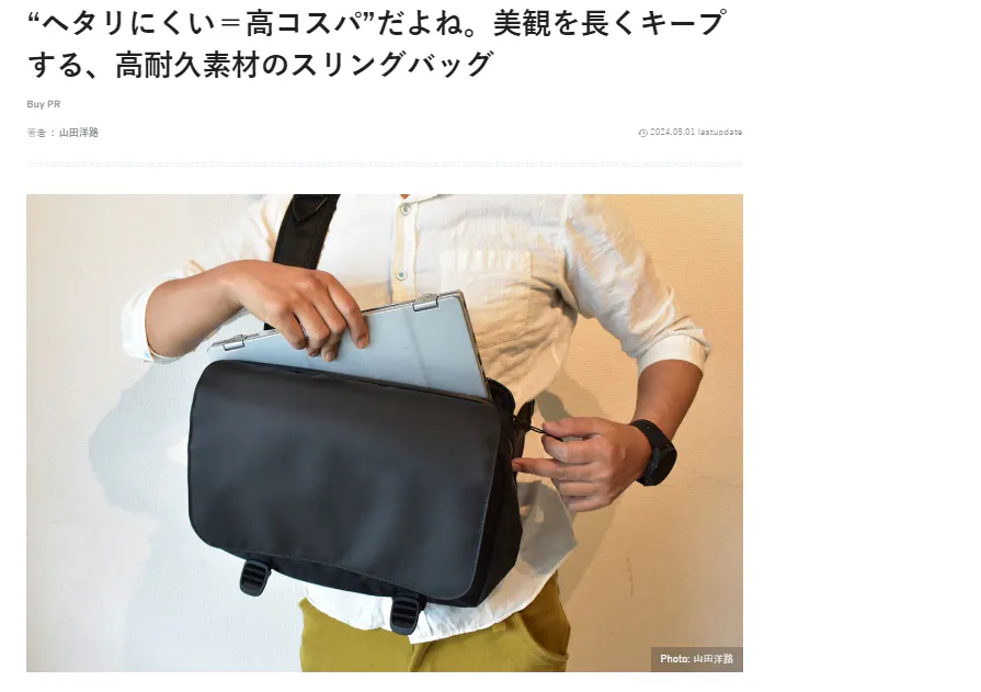 ライフハッカーにてタフビッグスリングバッグのレビュー記事が掲載されておりましたのでご紹介を致します!