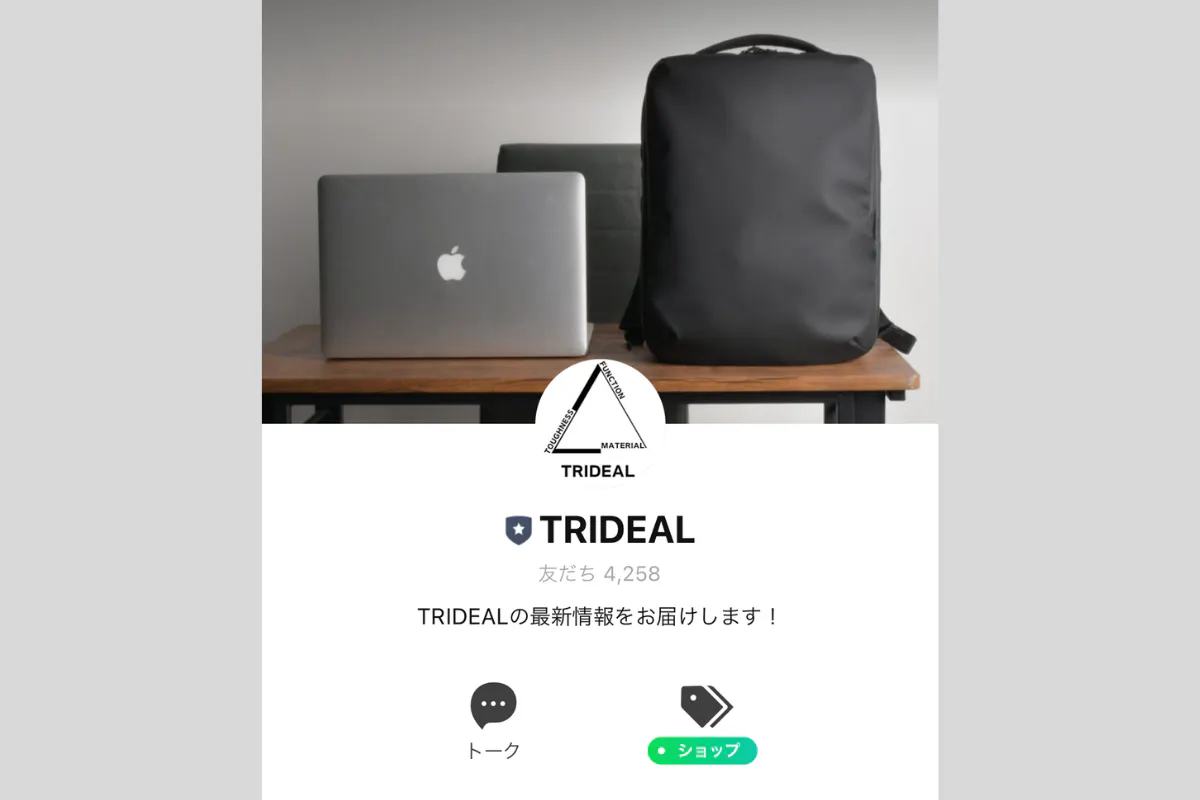 TRIDEAL公式ラインでは、新商品リリースの情報やお得なセールの情報をメインに配信しております。