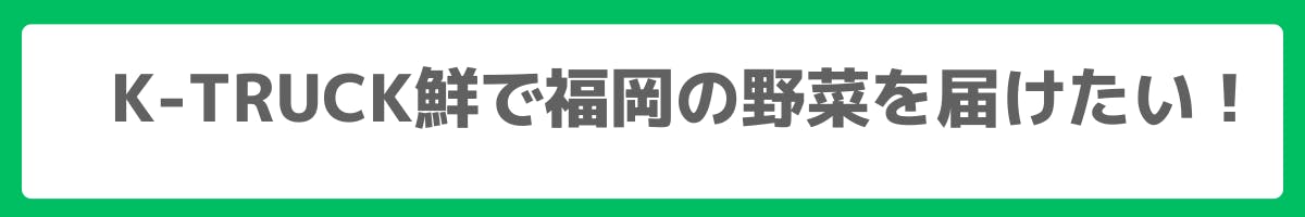このプロジェクトを達成し、頂いた支援金で移動販売の車「K-TRUCK鮮」の導入を実現し、リターン品を通して1人でも多くの方々に福岡県産の農産物の魅力を感じていただきたいです!